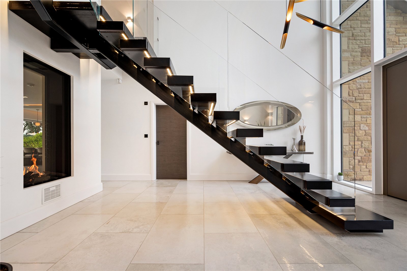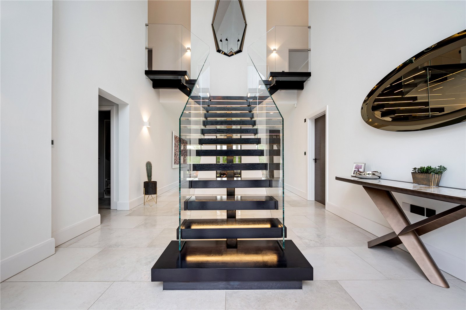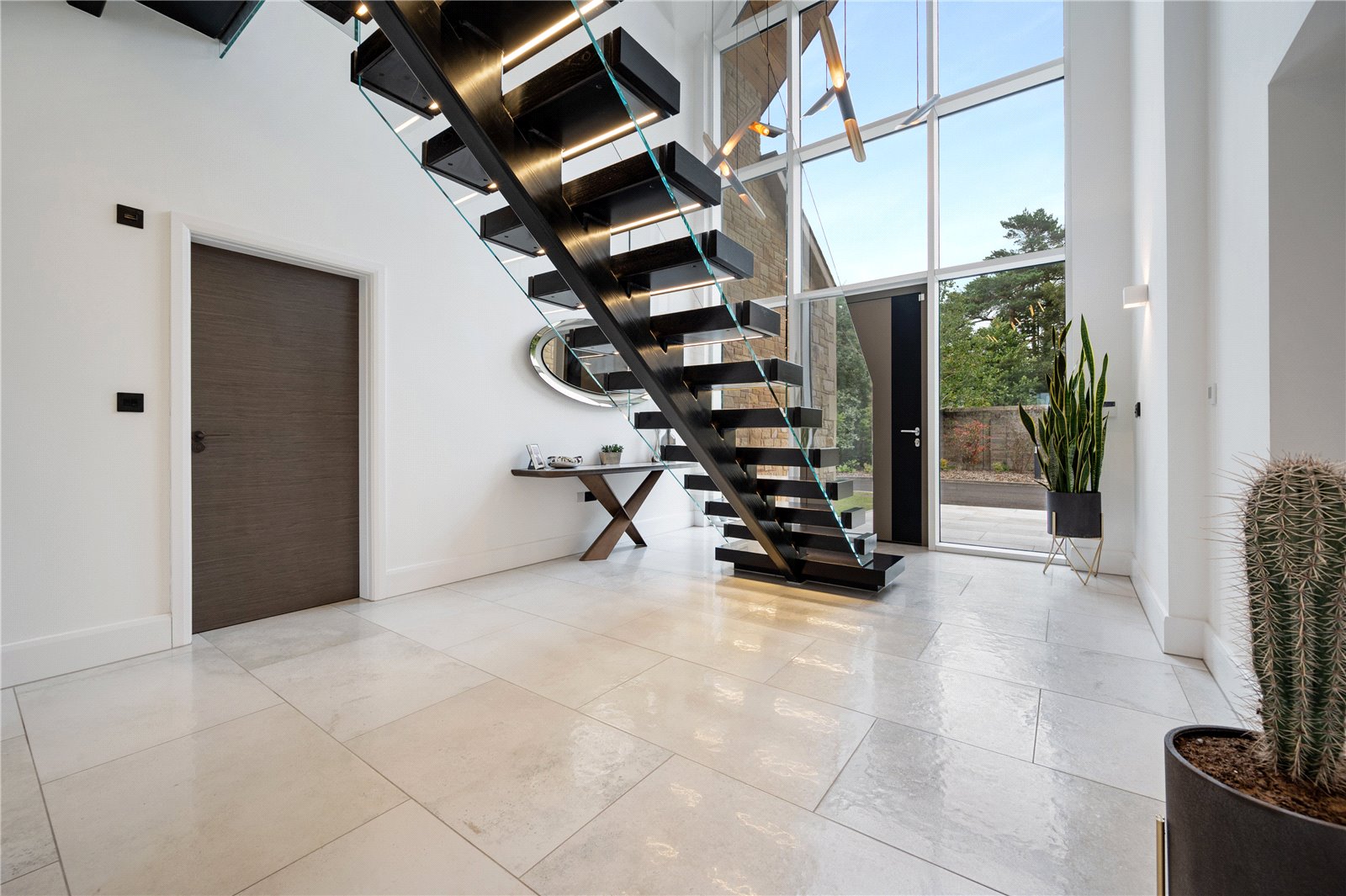 The approach is nothing but WOW, the luxurious glass-fronted entrance towers at 25ft, with a subtly stylish cedarwood finish it gives a hint of what’s to come. Walk through the plush over-sized doorway you are met with an impressive floating staircase, but even more eye-catching is the tunnelled fire that leads elegantly onto the central living space.