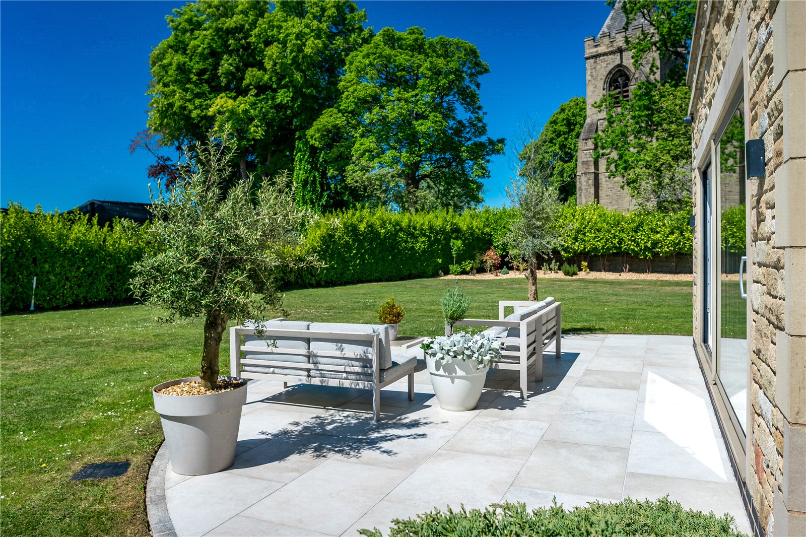 Outside, the property impresses from the moment you arrive, with its grand entrance through electric security gates leading to ample driveway parking for several cars. This, in turn, leads to an integral double garage, complete with an electric up-and-over door, built-in storage, and a boiler cupboard housing a wall-mounted Worcester boiler and water tank. The gardens to the side and rear are truly enchanting, bordering the picturesque 17th Century St. Michael's Church. They feature elegant porcelain tiled patios and pathways, as well as an expansive lawn bordered with lush laurel hedging, creating a serene and private outdoor oasis.
