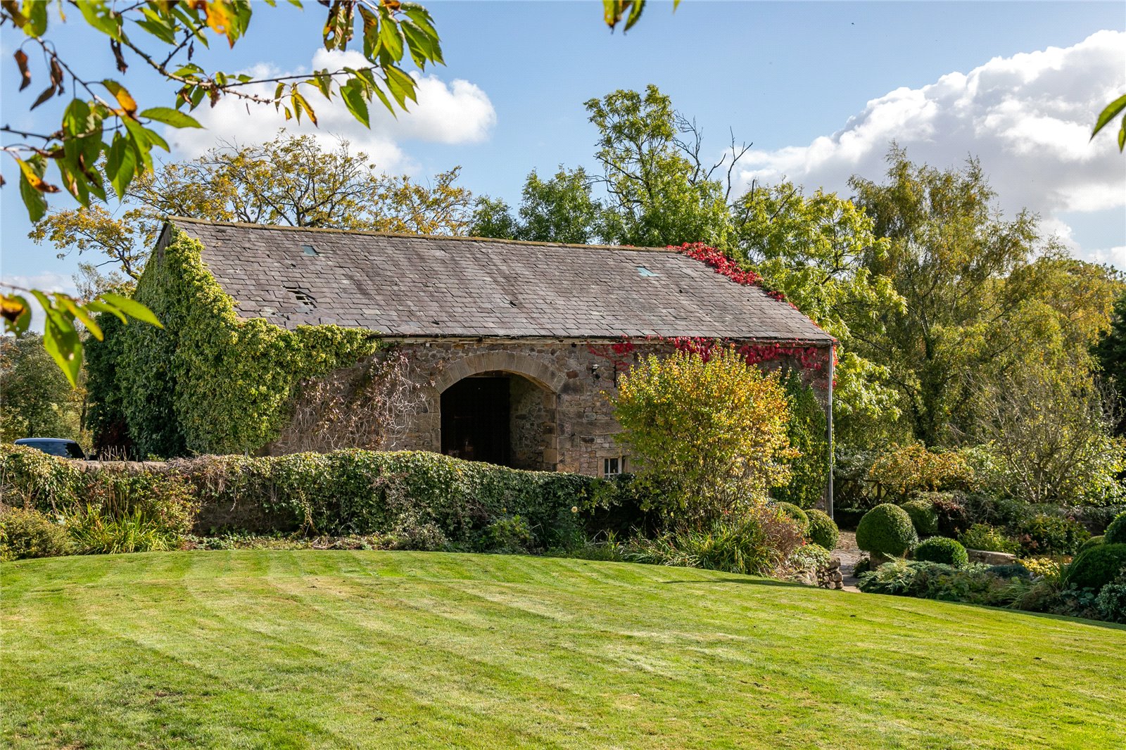 The detached stone barn is a treasure in its own right, with original timber stalls, a mezzanine level, and exceptional potential for conversion into a self-contained annex, creative studio, or leisure space. Outside, the home is accessed via electric gates, leading to private parking and exquisite gardens that provide a serene escape in the heart of the countryside.