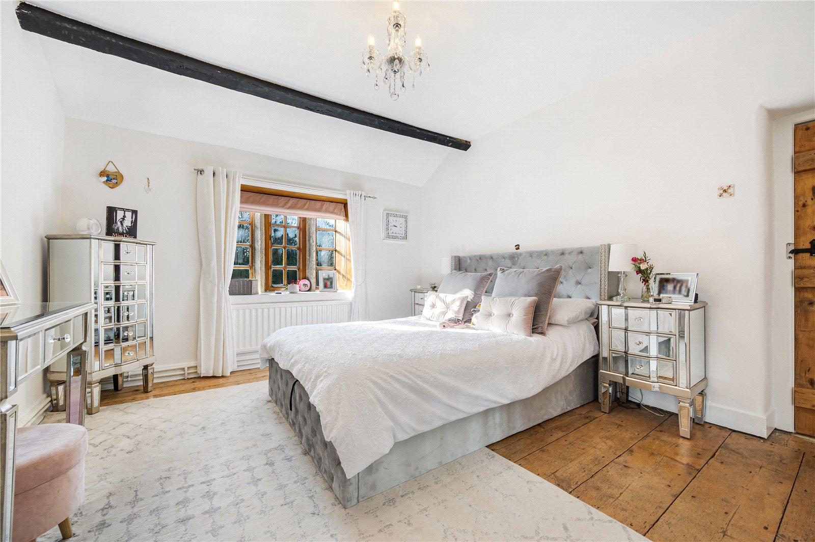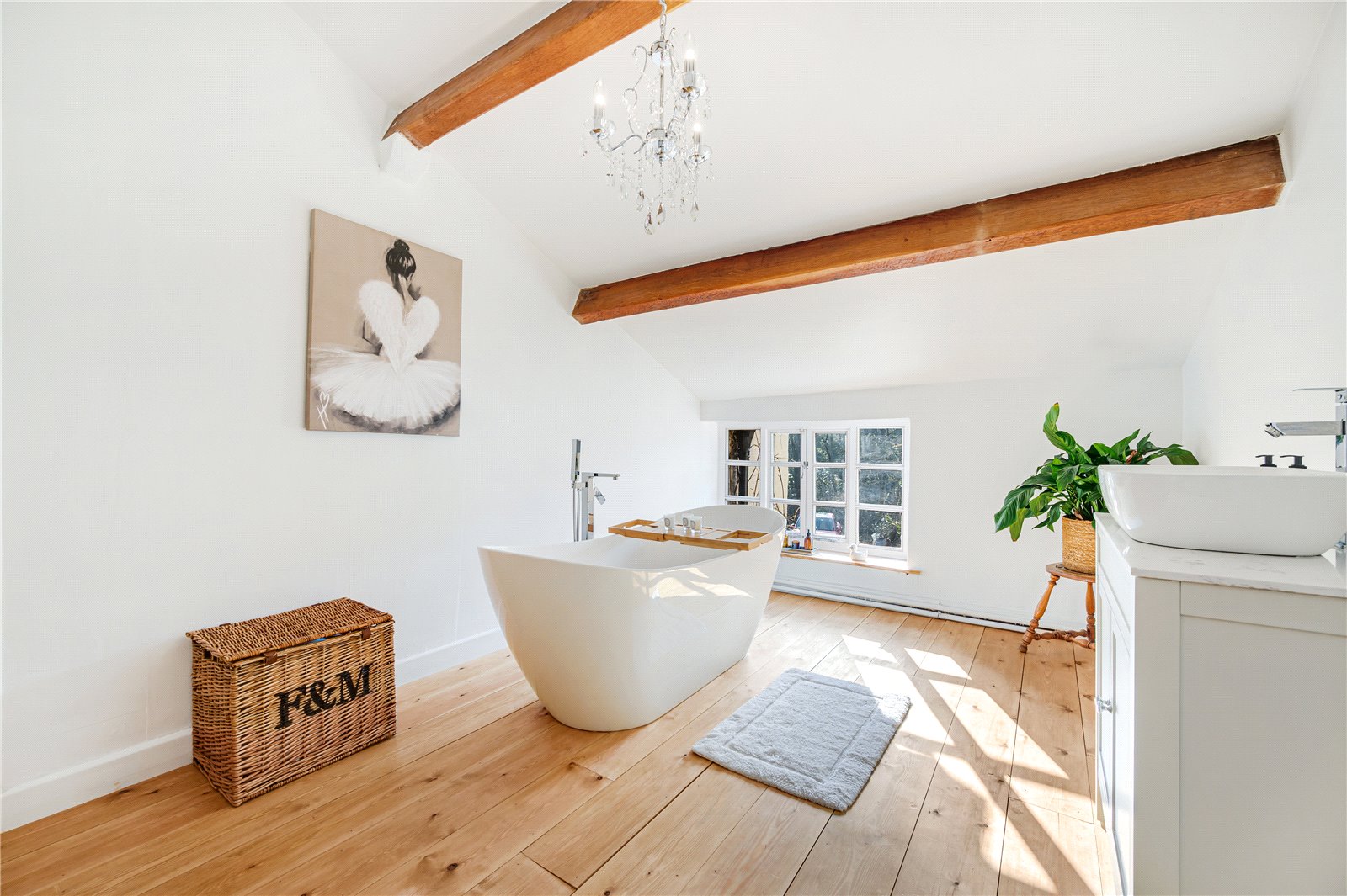 Study / playroom with solid oak flooring and exposed beamed ceiling.
