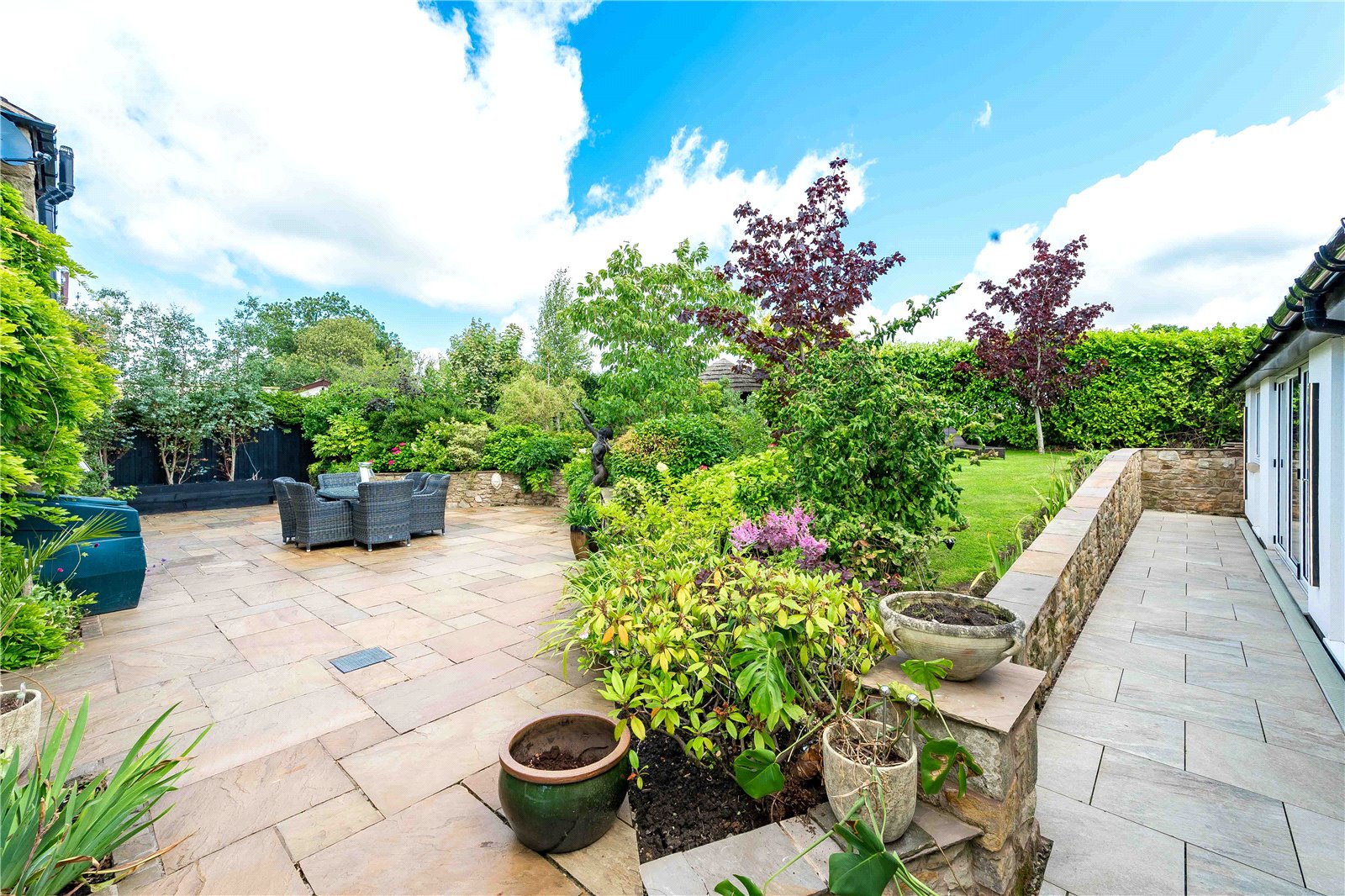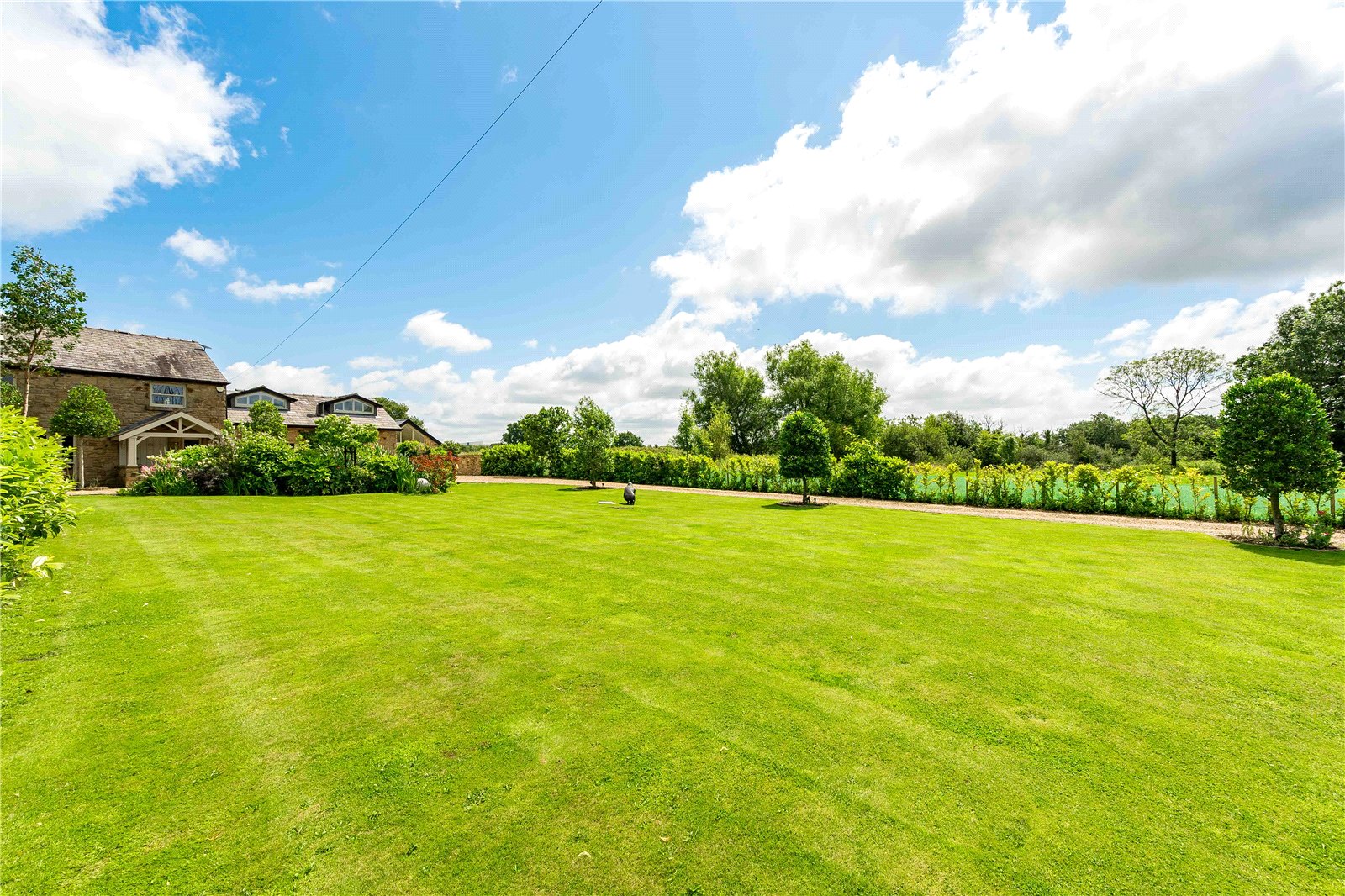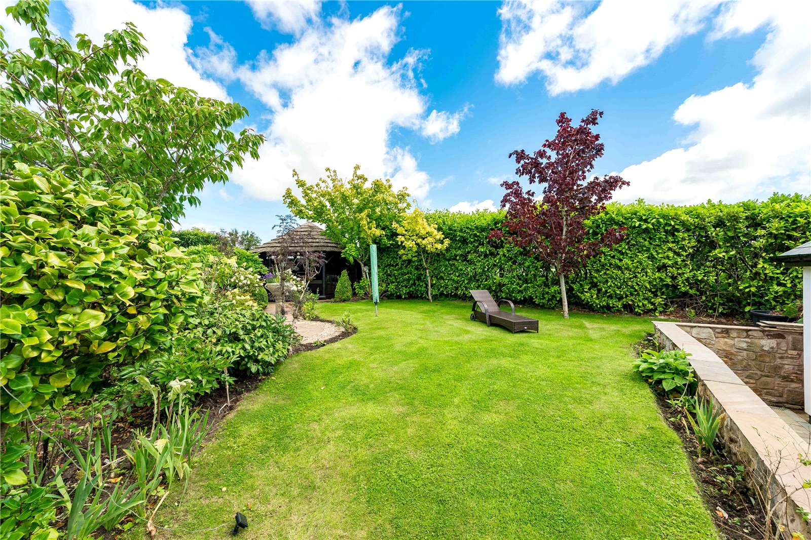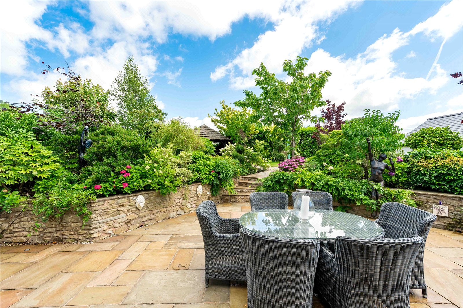 Outside, the property continues to impress. A sweeping, gated driveway laid with stone chippings provides ample parking for several vehicles. The front garden is expansive, landscaped with mature planting, trees and shrubs offering privacy and seasonal interest. To the rear lies a beautifully secluded garden, featuring an Indian stone patio, lawned terraces, and a superb Breeze House—perfect for al fresco dining and summer entertaining. This peaceful haven is richly planted and includes a delightful water feature, creating an oasis of calm.