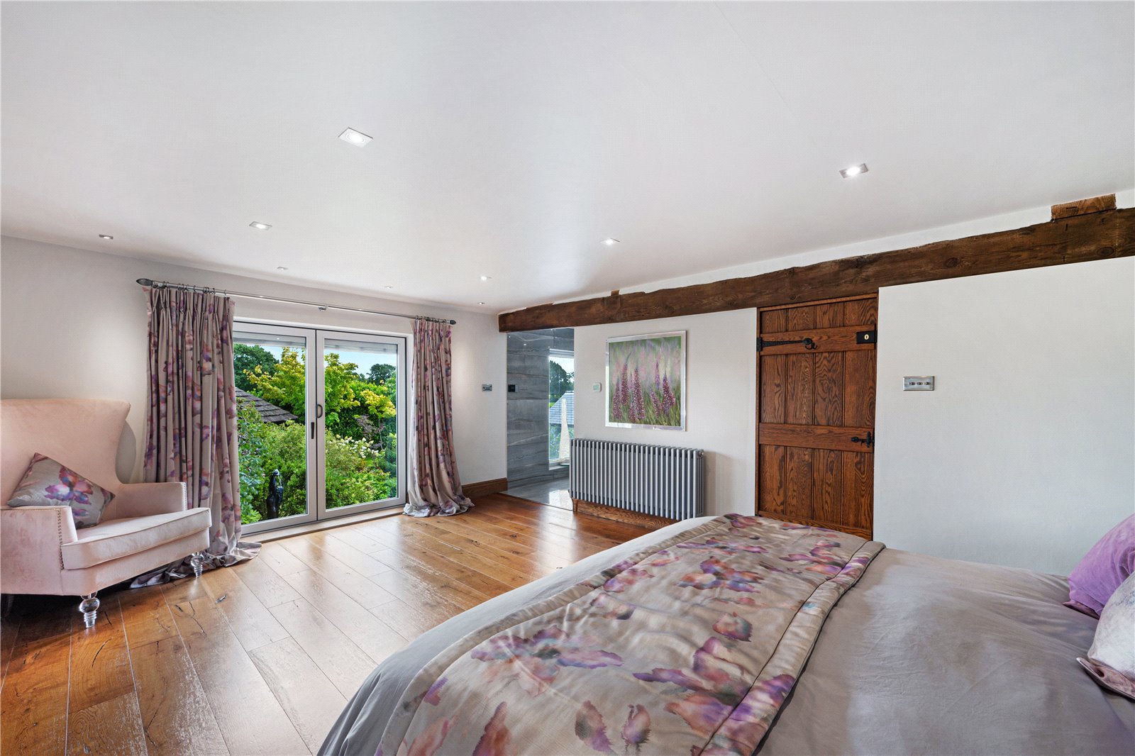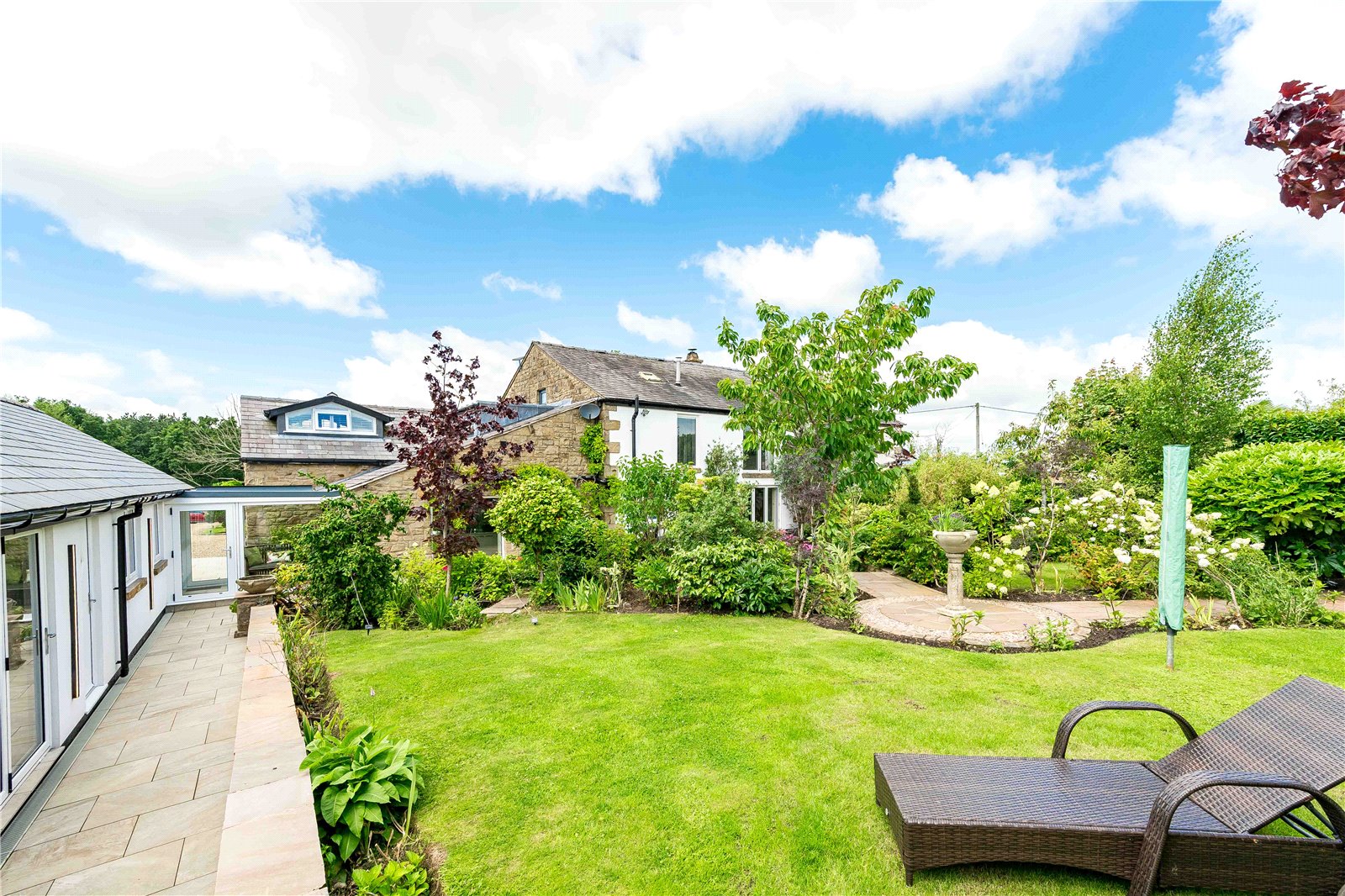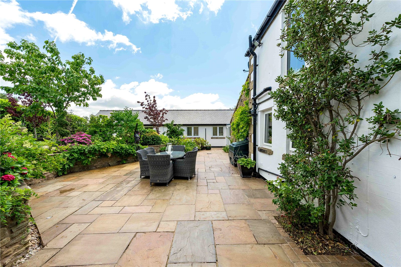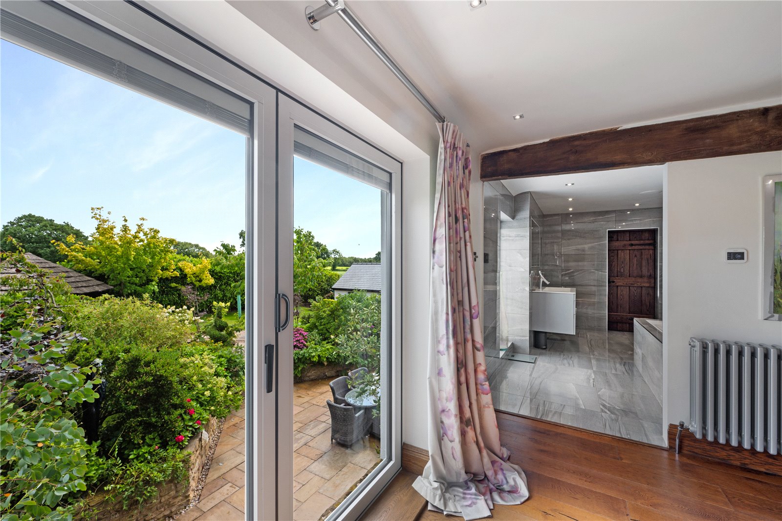 Outside, the property continues to impress. A sweeping, gated driveway laid with stone chippings provides ample parking for several vehicles. The front garden is expansive, landscaped with mature planting, trees and shrubs offering privacy and seasonal interest. To the rear lies a beautifully secluded garden, featuring an Indian stone patio, lawned terraces, and a superb Breeze House—perfect for al fresco dining and summer entertaining. This peaceful haven is richly planted and includes a delightful water feature, creating an oasis of calm.