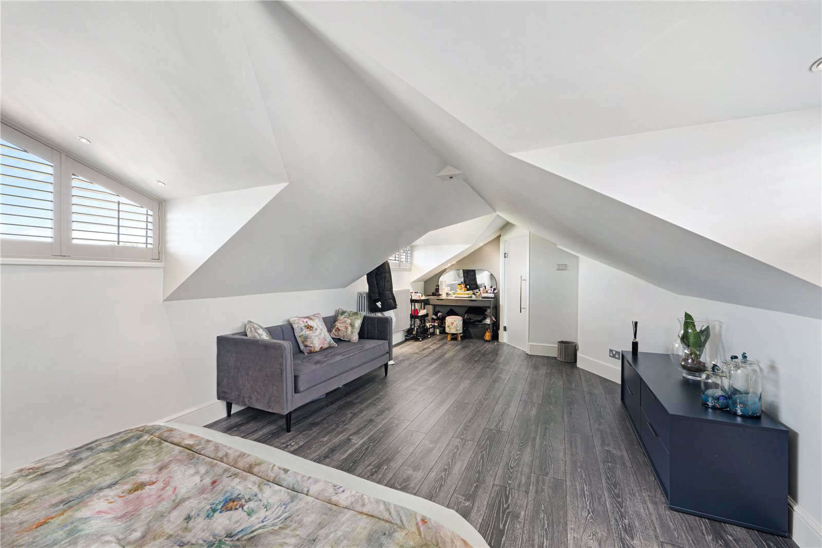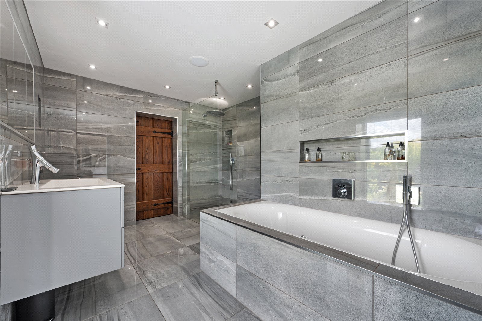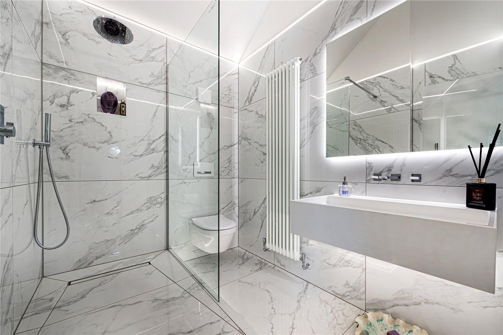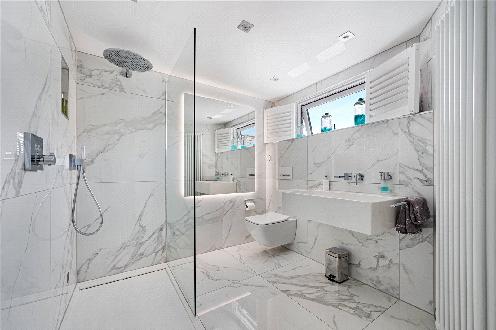 The remaining bedrooms are all generously sized, one currently arranged as a home office. A contemporary 3pc shower room serves these rooms, featuring a walk-in rainfall shower, wash basin, dual flush WC, and fully tiled walls and floors.