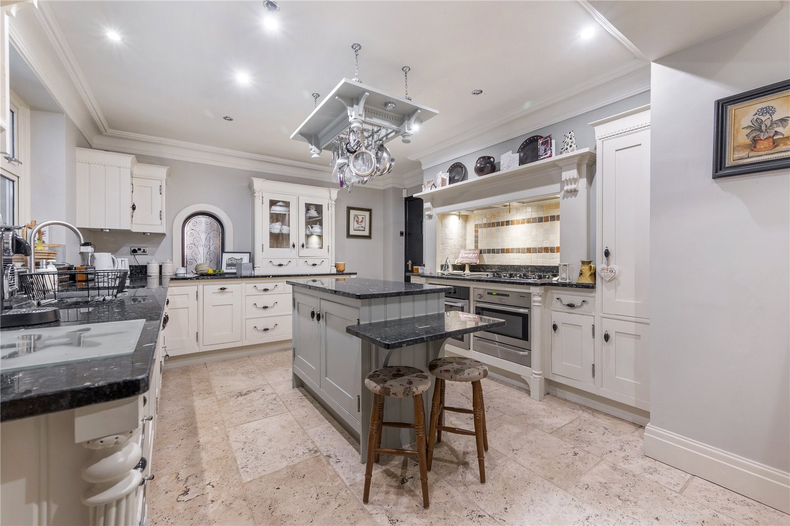 This well-maintained and charming home offers approximately 2,400 square feet of living space and presents a fantastic opportunity for those looking to modernize and upgrade. Upon entry, a porch leads into a welcoming entrance hall, opening up to a bright and spacious lounge with a feature inglenook fireplace and a cozy adjacent reading area. The fitted kitchen boasts granite countertops and integrated appliances, complemented by a useful utility room and a formal dining room. Off the inner hallway, you'll find a guest WC, and the ground floor is completed by a conservatory with access from the kitchen.