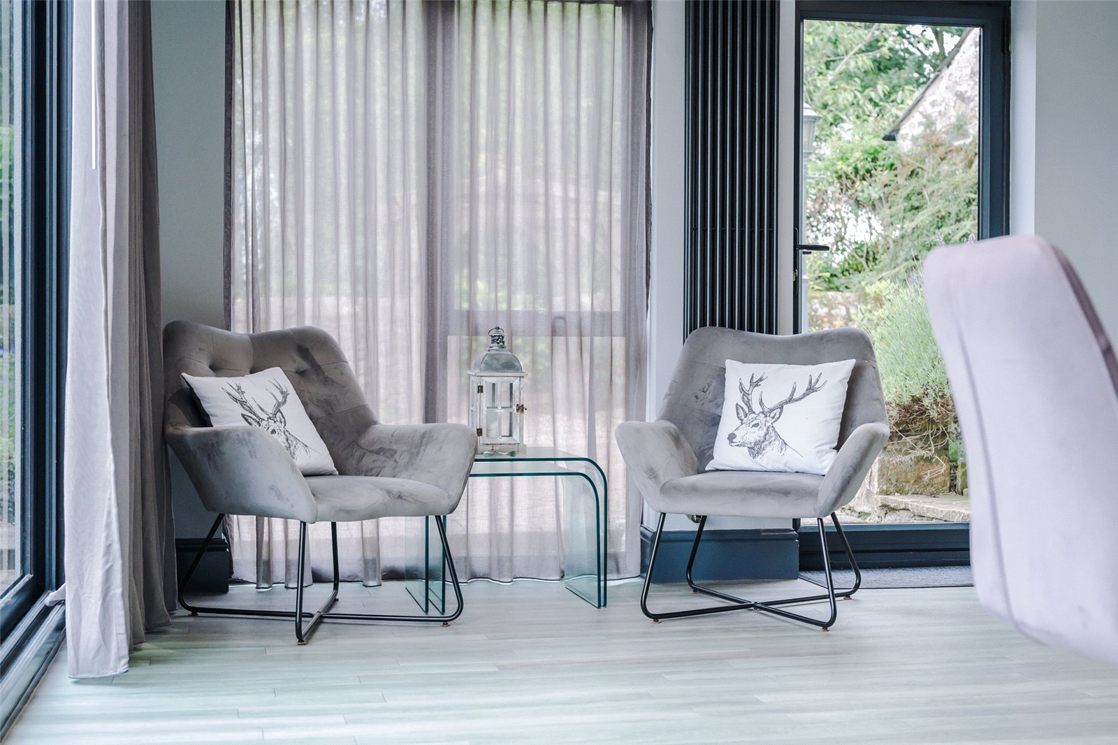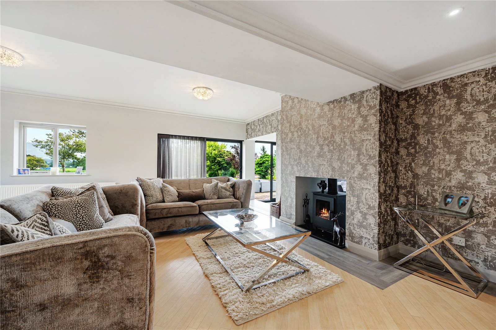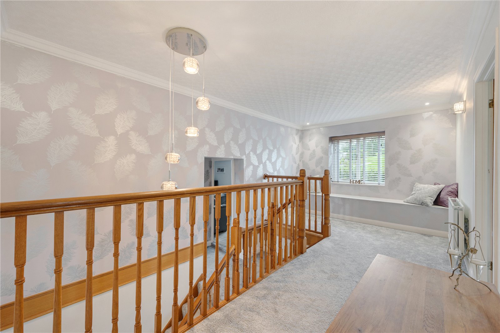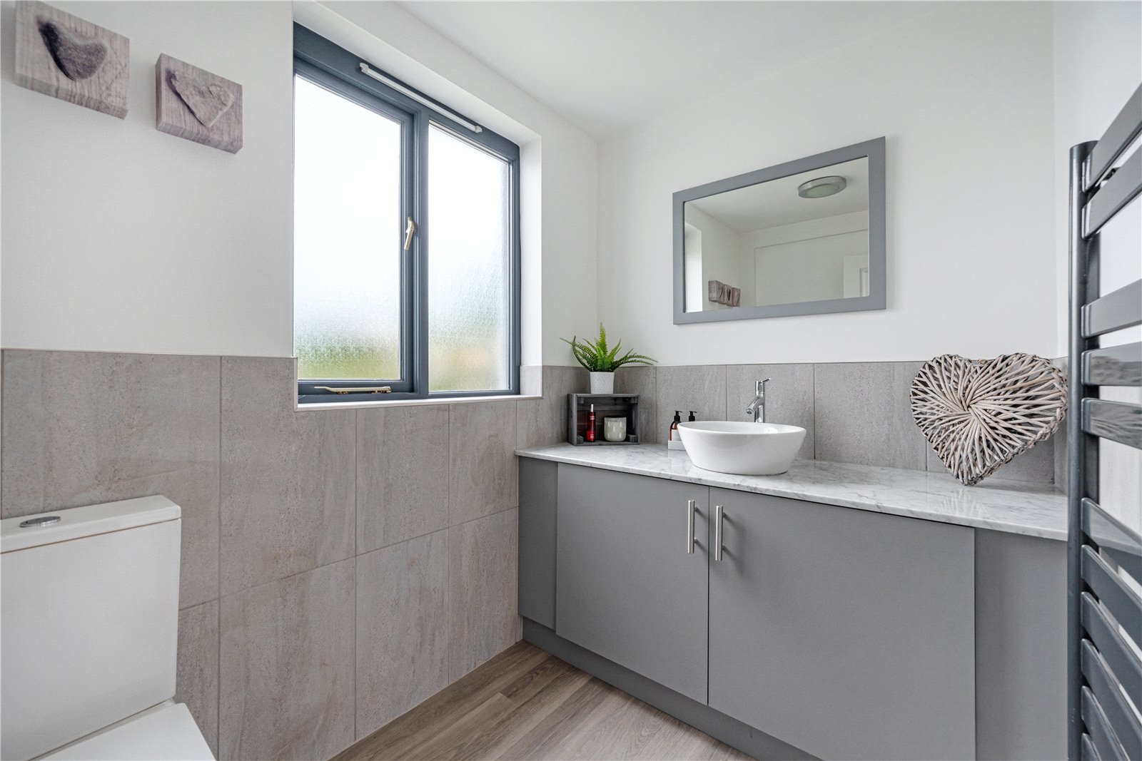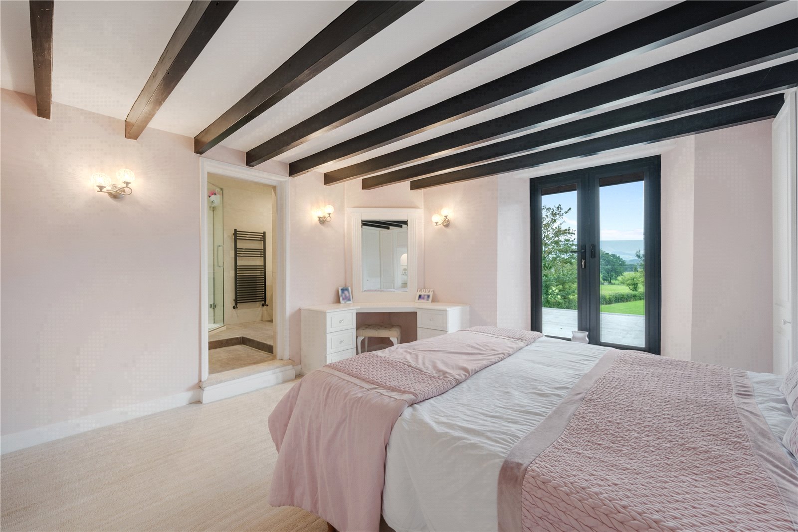 The property offers well-planned accommodation of Circa 3412 Sq Ft, and features an inviting entrance hall with a barn arch entrance, double doors at the front, and Amtico flooring throughout much of the ground floor. The dining room includes a decorative fire place and there is a hatch leading to a cellar with a flagged floor, perfect for wine storage. The snug is a cosy retreat with windows on both the front and side, while the living room centres around a dual-room multi-fuel stove, complemented by sliding patio doors that open to the rear. The dining kitchen is Siematic and is both stylish and functional, equipped with a range of units, an Aga with a two-ring hot plate and double oven, integrated dishwasher, Corian worktops with matching upstands, and additional sliding doors that lead to the rear garden. Adjacent to the kitchen, a side hall offers practical storage space and connects to a two-piece cloakroom with a marble plinth wash basin and dual flush WC. The utility room is well-appointed with a single-bowl sink, ample work surfaces, plumbing for a washing machine, space for a dryer, an external door, and more storage.