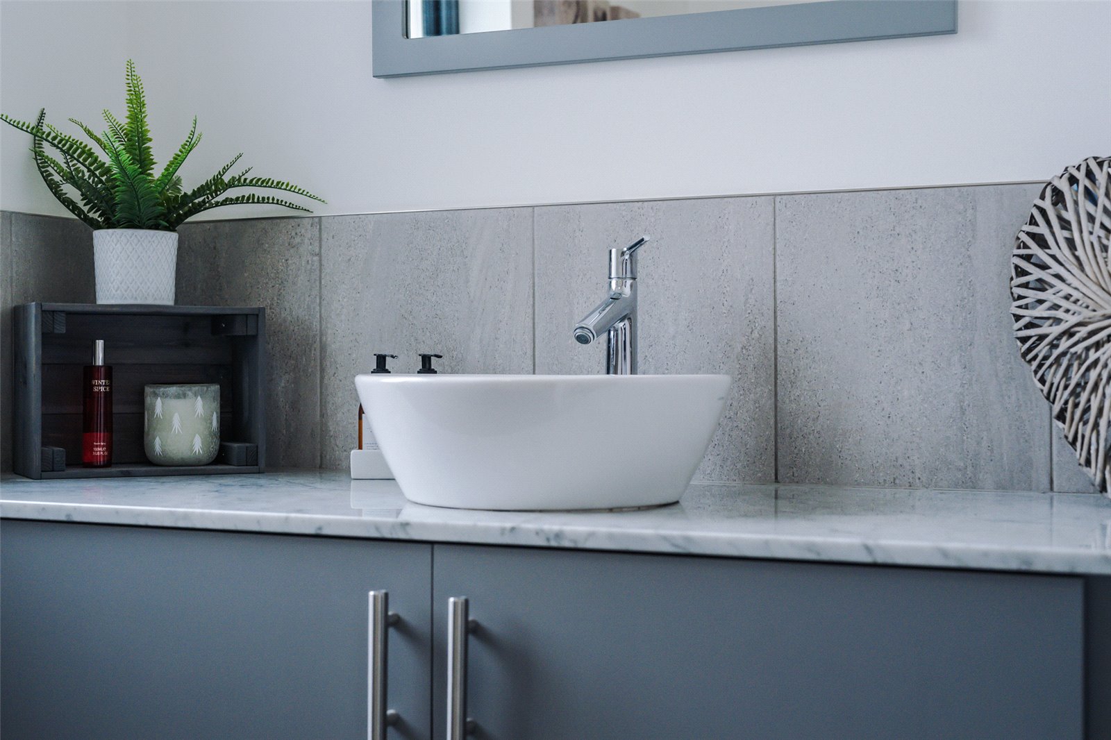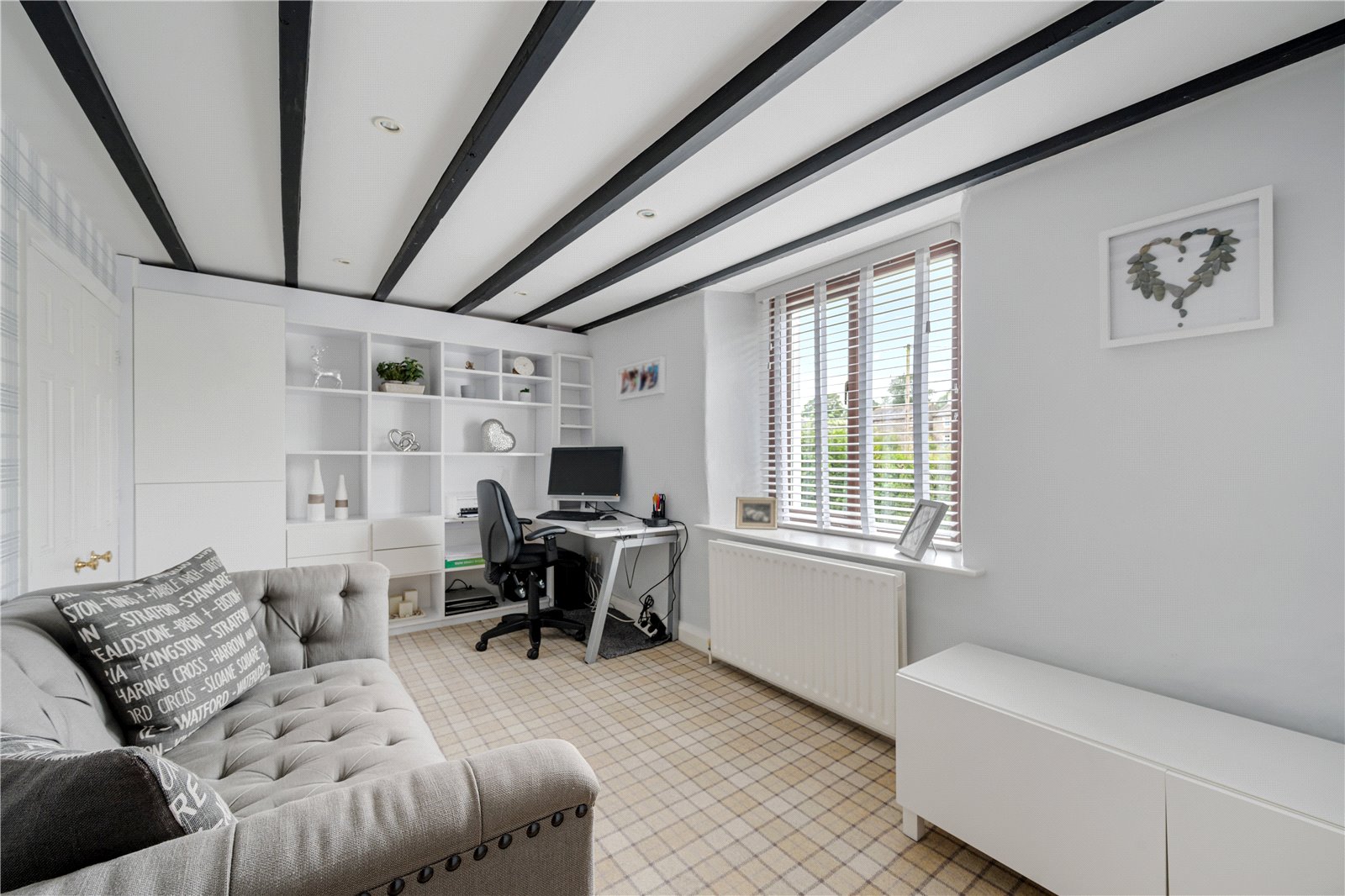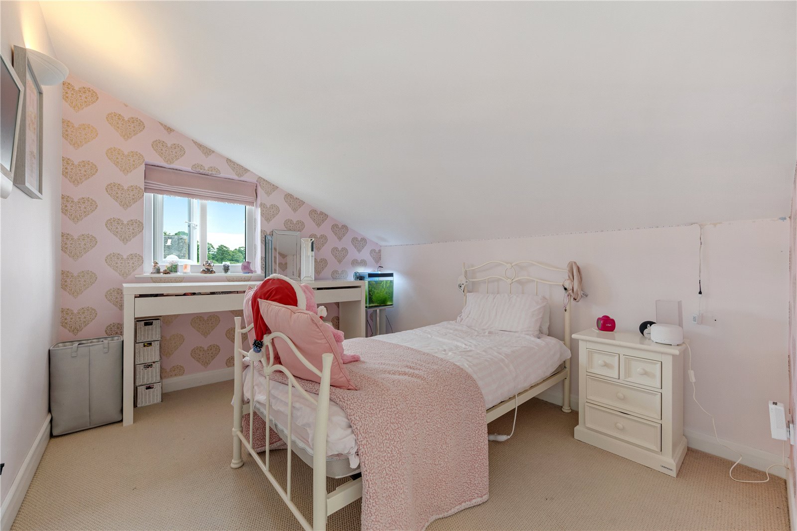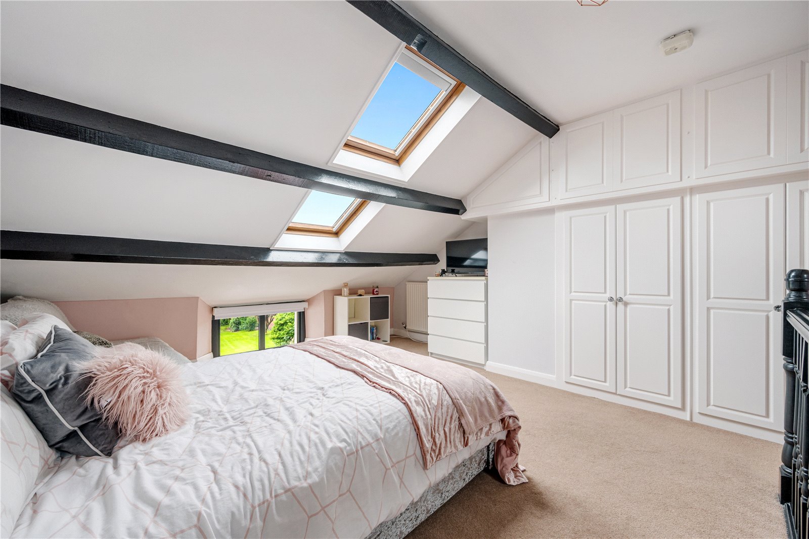 Upstairs, the first floor houses five well-proportioned bedrooms. The main bedroom features built-in wardrobes, a dressing table, and bedside tables, with French doors opening onto a roof extension, offering the possibility of a private balcony or terrace. The en-suite shower room is a 3pc suite includes a walk-in shower with overhead and side attachments, a wash basin, and a dual flush WC. Another bedroom is currently used as an office, showcasing the versatility of the home. The 4pc family bathroom offers a touch of luxury with a freestanding bath, a walk-in rainfall shower, a wash basin, and a dual flush WC. A space-saving staircase leads to a loft area, ideal for use as a sixth bedroom, complete with built-in wardrobes and a convenient 2pc WC.