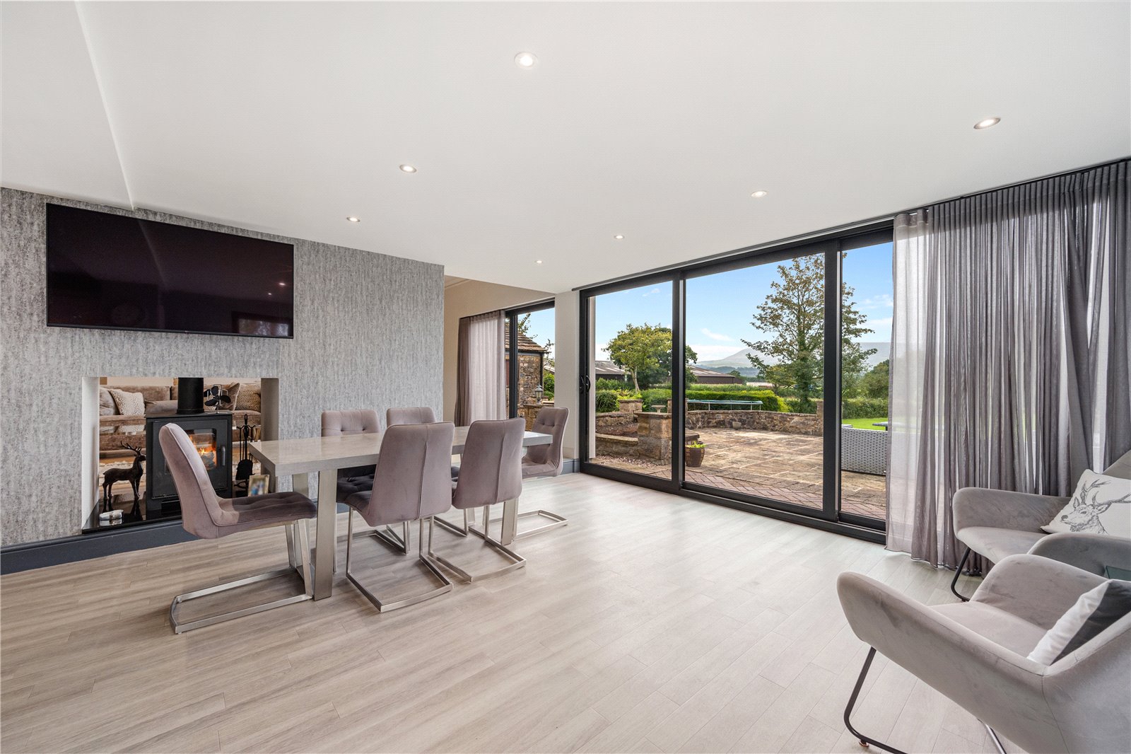 Moor Roods is a distinguished detached family home set in a desirable location within West Bradford Village, offering breathtaking views of Pendle Hill. This former weaver's cottage and barn is nestled on a generous plot of approximately 1.15 acres, and a personal viewing is strongly encouraged to truly appreciate its character and setting.