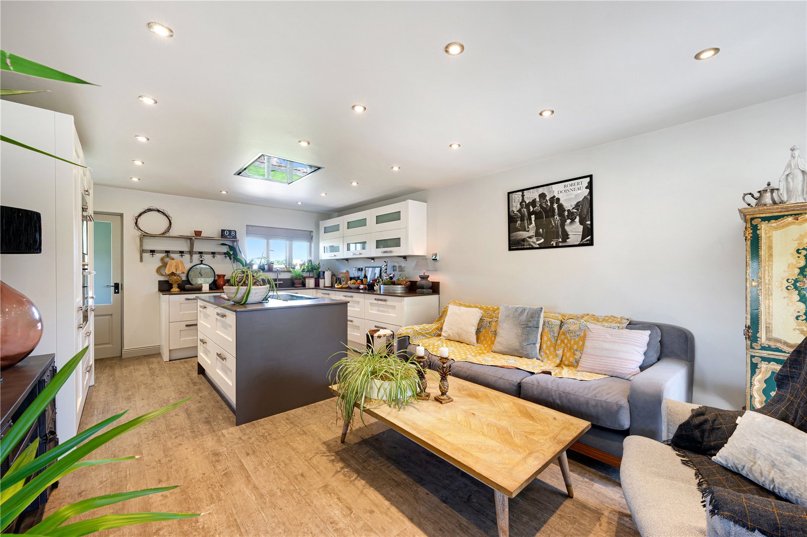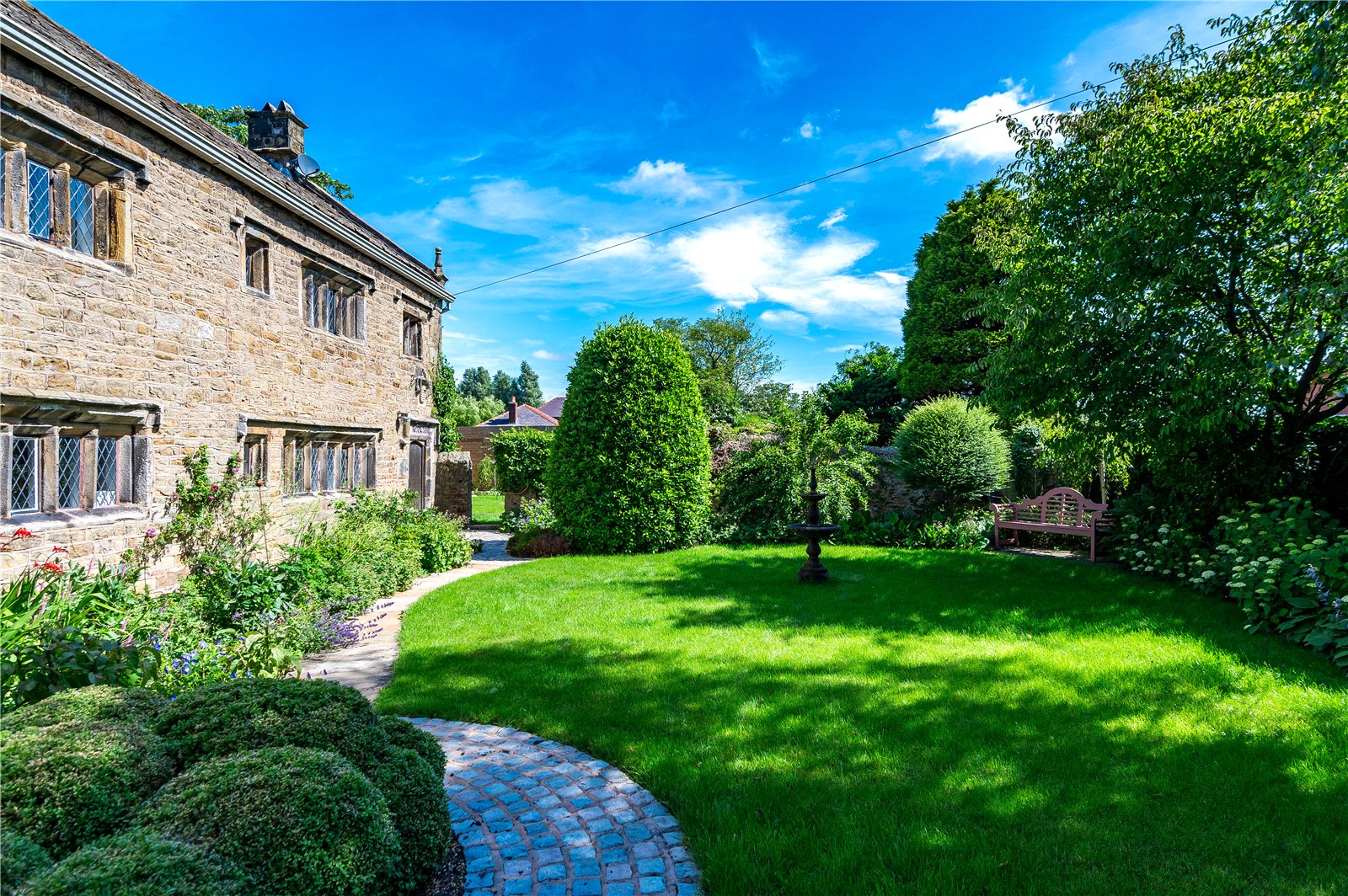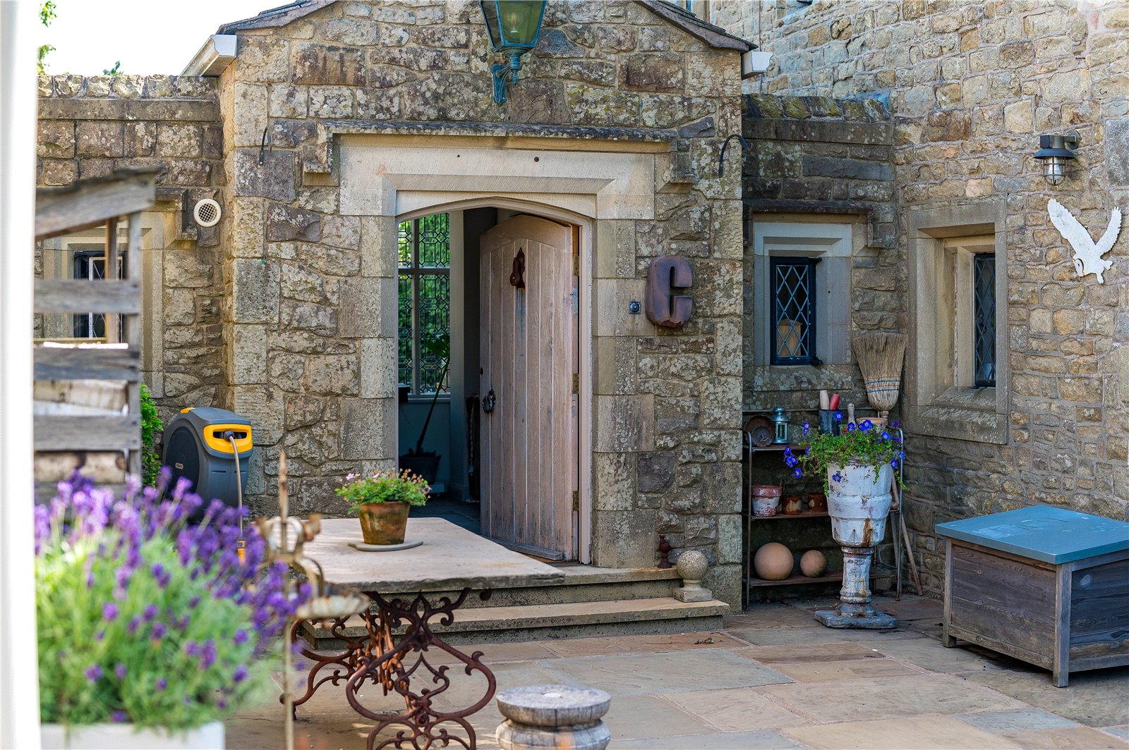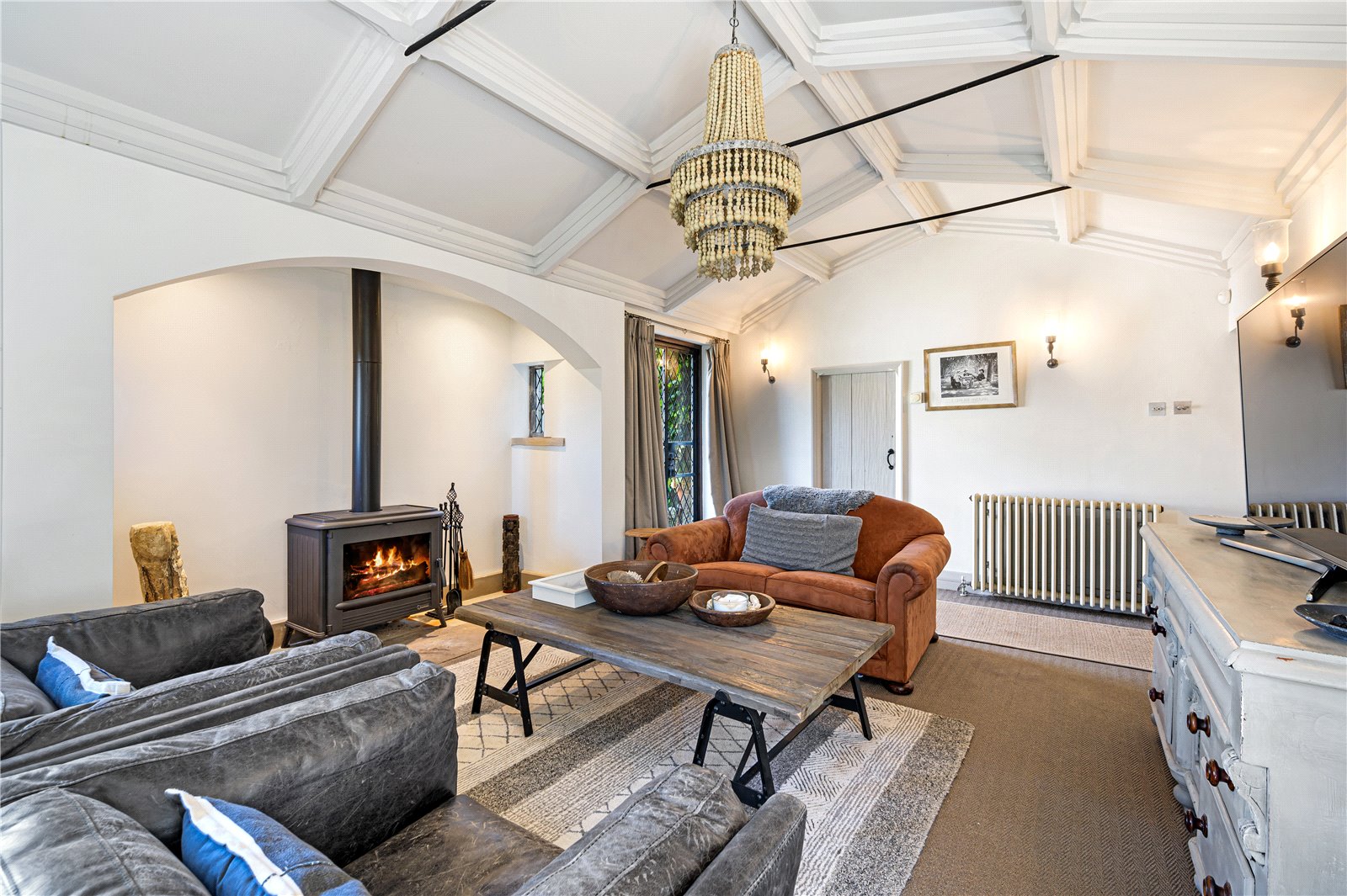Continuing the seamless flow of luxury, the underfloor heating extends into the sitting room, where Ted Todd engineered boards adorn the floor, creating a delightful ambiance. This room occupies the oldest part of the house and features a charming wood-burning stove, dual aspect mullion windows, and the original front door of the property, proudly displaying the carved date of 1616 on the lintel, along with the initials AH, believed to be Adam Hoghton.