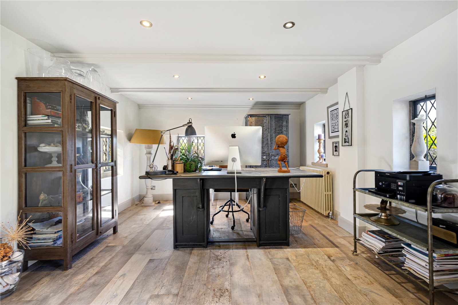 As you ascend the stairs from the living room, you'll discover a first-floor landing leading to three spacious double bedrooms and a luxurious household bathroom complete with a clawfoot bath and separate shower. The principal bedroom boasts a fantastic ensuite, featuring a unique jettied garderobe (drop toilet) with the WC now located within it. Additional stairs from the first-floor landing lead you to a beautifully decorated and light work and craft space, which doubles as an occasional guest room, showcasing the versatility of this extraordinary home.