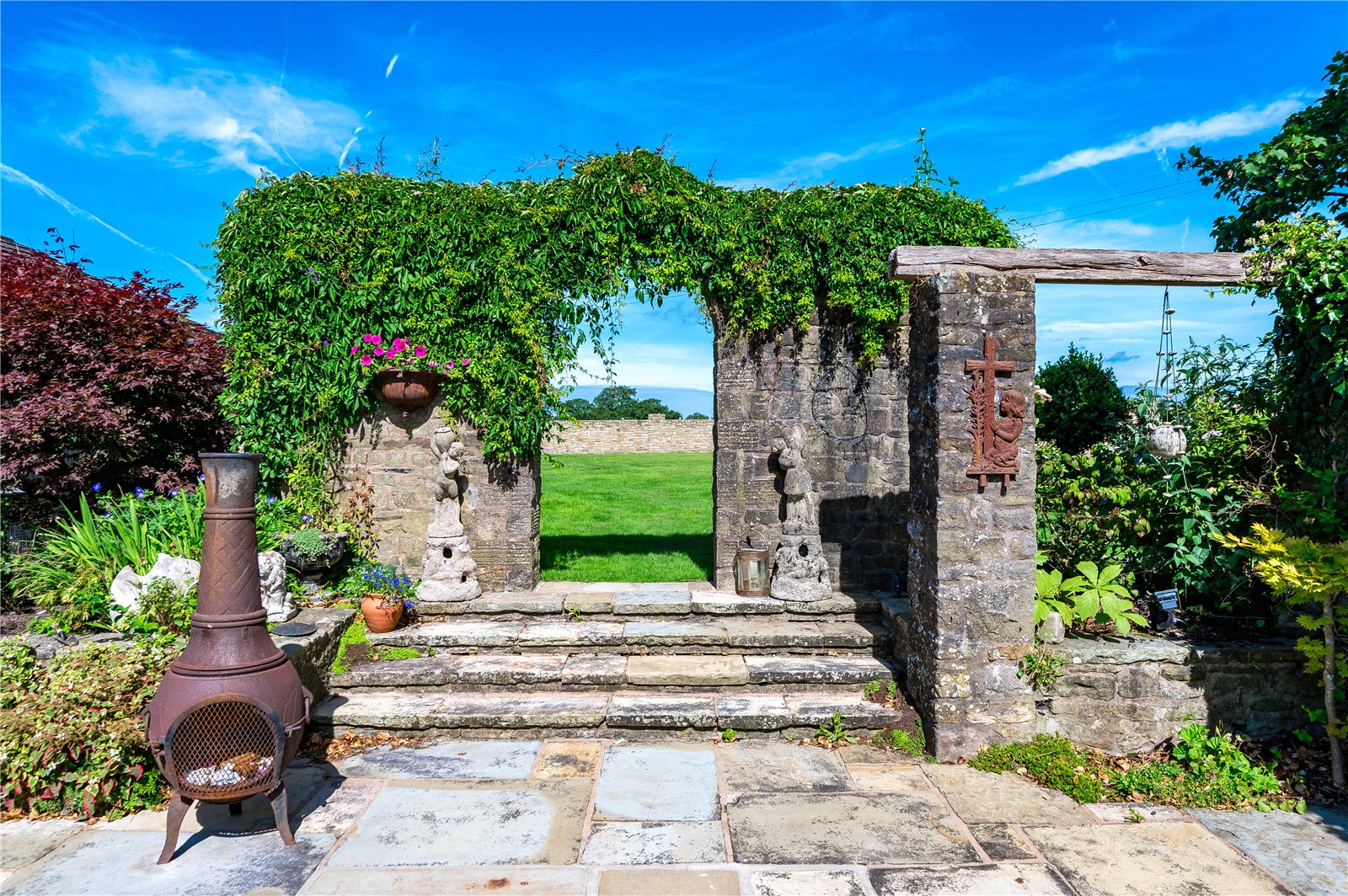 The grounds of Old Rib Farm span to just over 1.5 acres and are a true haven of beauty. Several lawned gardens with mature borders and well-established planting create a serene and picturesque setting. Decorative fountains, both in the rear garden and alongside the gravel parking area, add a touch of elegance and peaceful ambience. An enclosed kitchen garden features raised beds and a large greenhouse, ideal for cultivating your own fresh produce. A substantial stone shed presents the opportunity to be converted into a home office, complete with a wood store at the rear. The double garage, equipped with an electric up and over door, offers convenience and additional storage space, as well as plumbing for a washing machine.