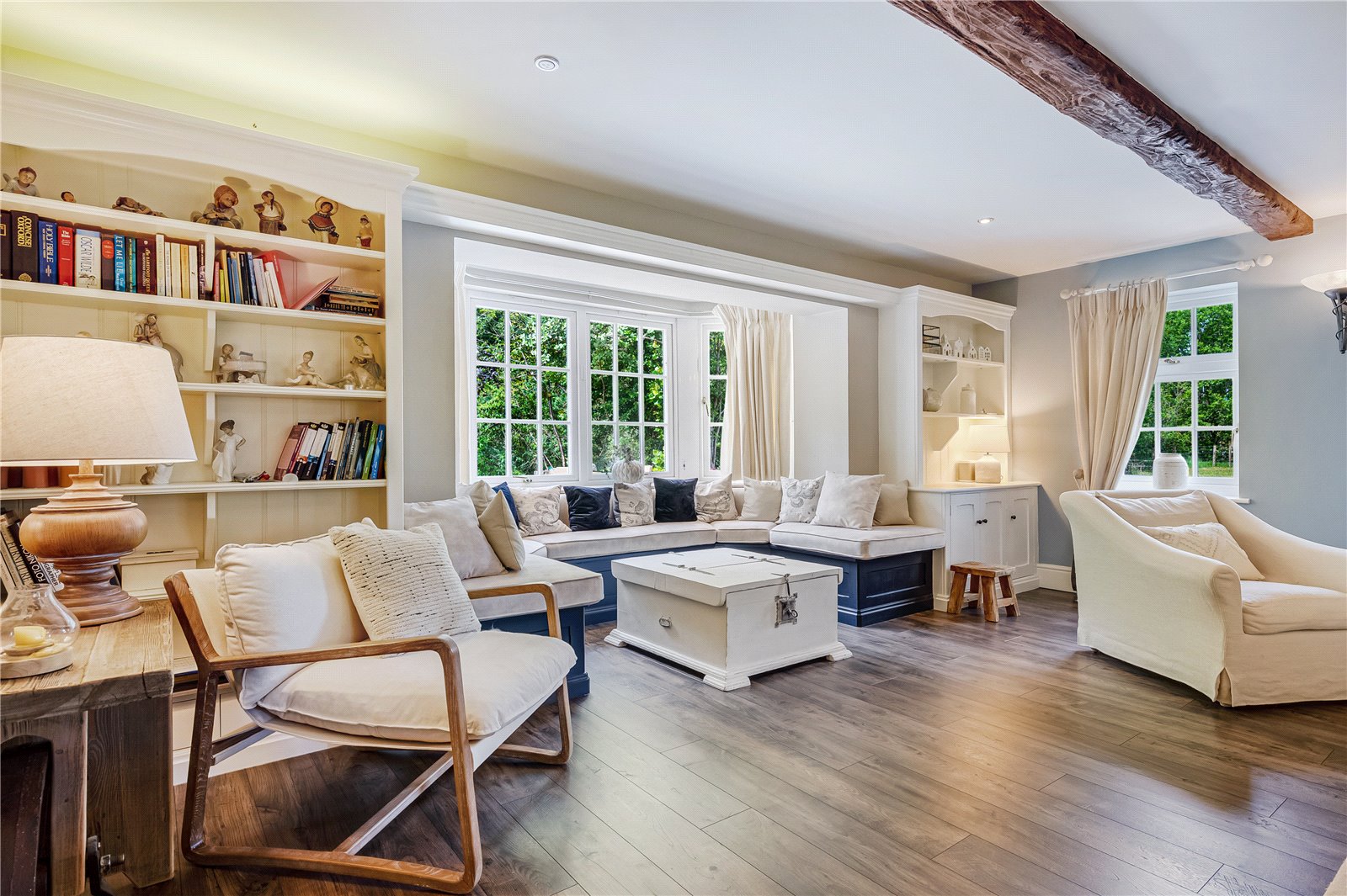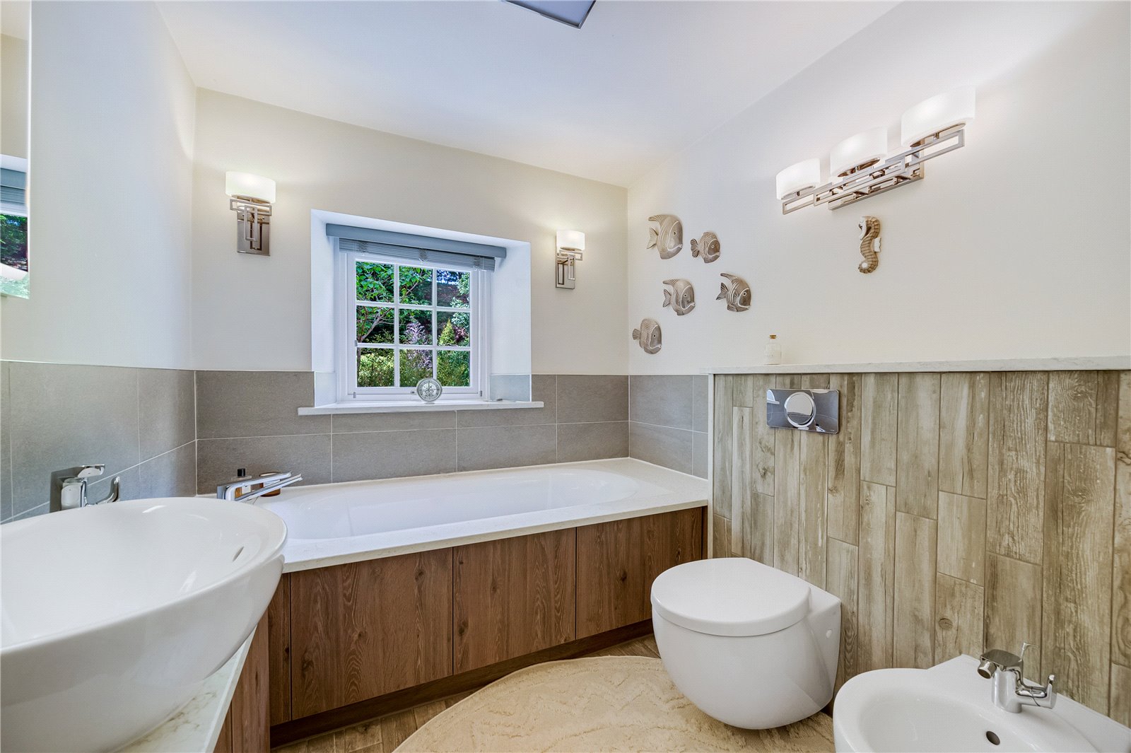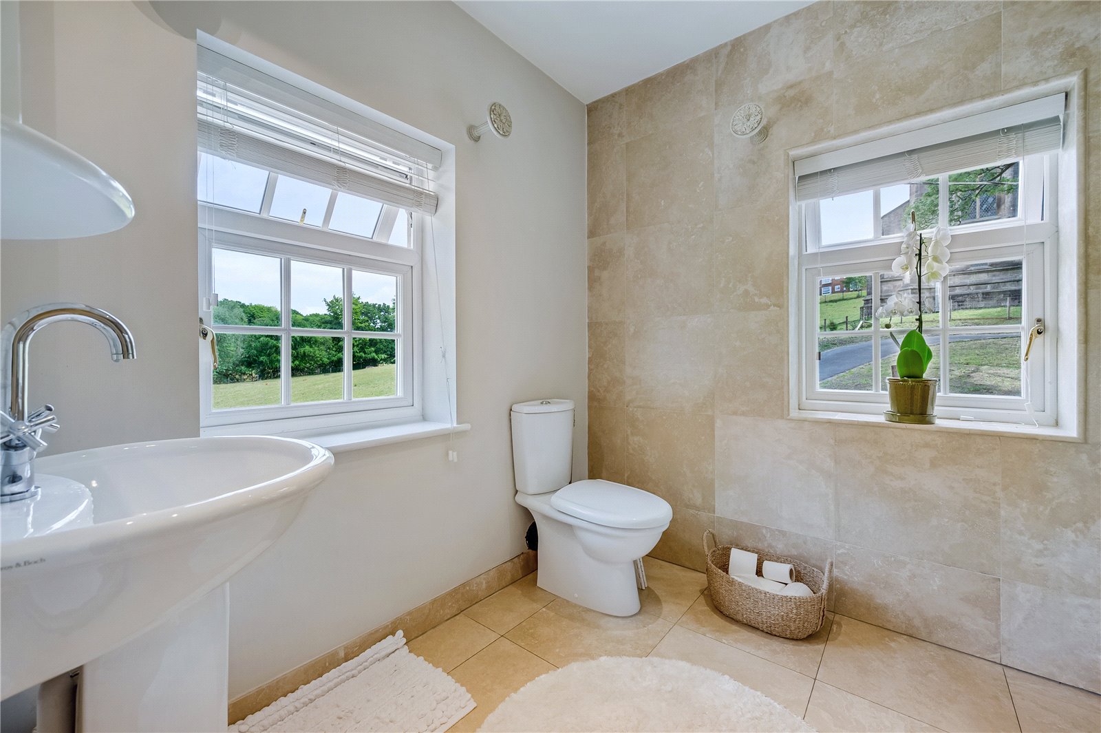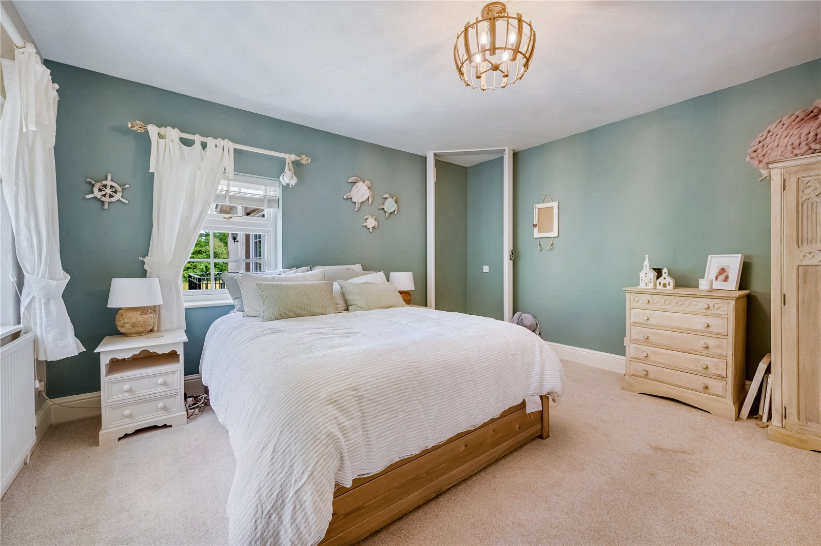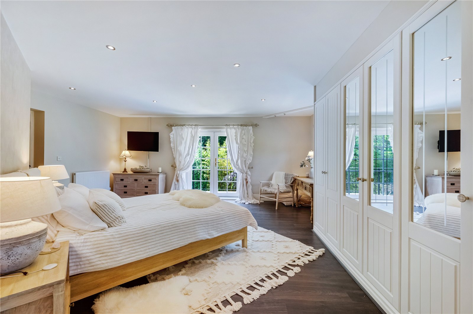 Upstairs, the principal suite enjoys private balcony views across the gardens and rolling fields towards the river. Bedrooms one to three each feature their own stylish en-suite shower rooms, while bedrooms four and five are served by a beautifully finished family bathroom.