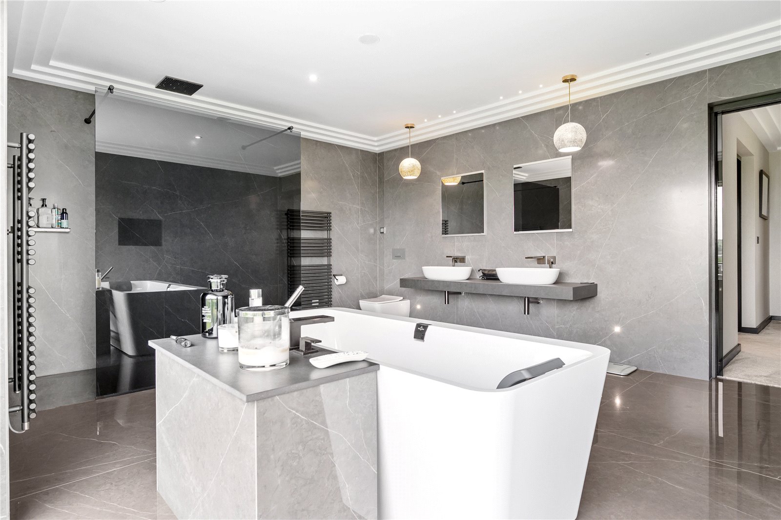 On the First Floor there are windows to the front and rear with the frontal views offering a stunning open panorama and the rear having a pleasant vista of Pendle Hill over a rooftop sedum garden. There are Four Double Bedrooms with the Main benefitting from sliding dual aspect doors taking in breathtaking views. Twin Dressing Rooms with bespoke built in wardrobes to both. The En-Suite is a luxury 5pc En-Suite with a Freestanding Villeroy and Boch Bath, walk in shower with overhead rainfall shower, Villeroy and Boch twin wash basin and dual flush WC, tiled floor and walls and corner dual aspect window. The remaining Three Bedrooms come complete with 3pc En-Suite Shower Rooms.