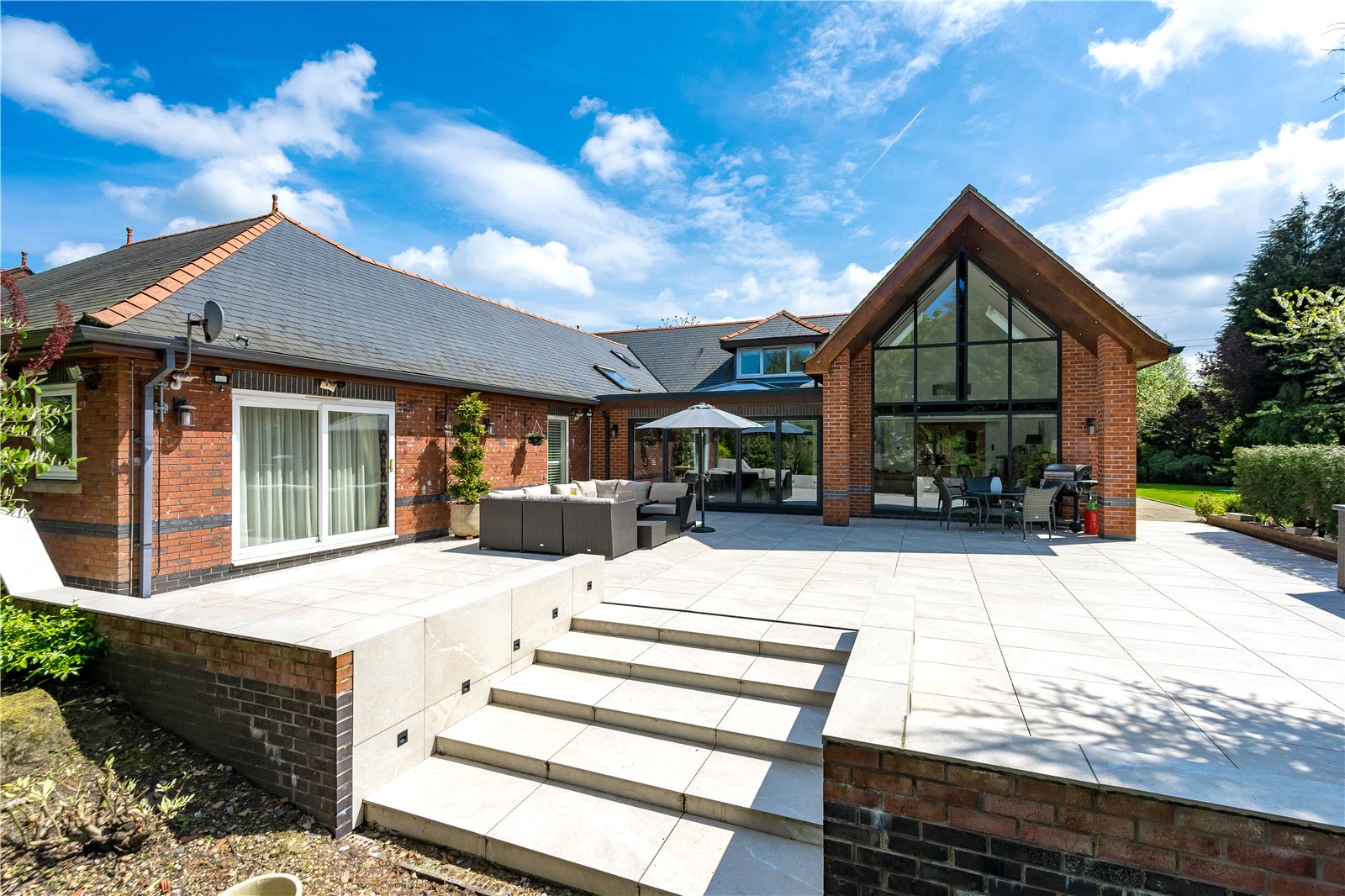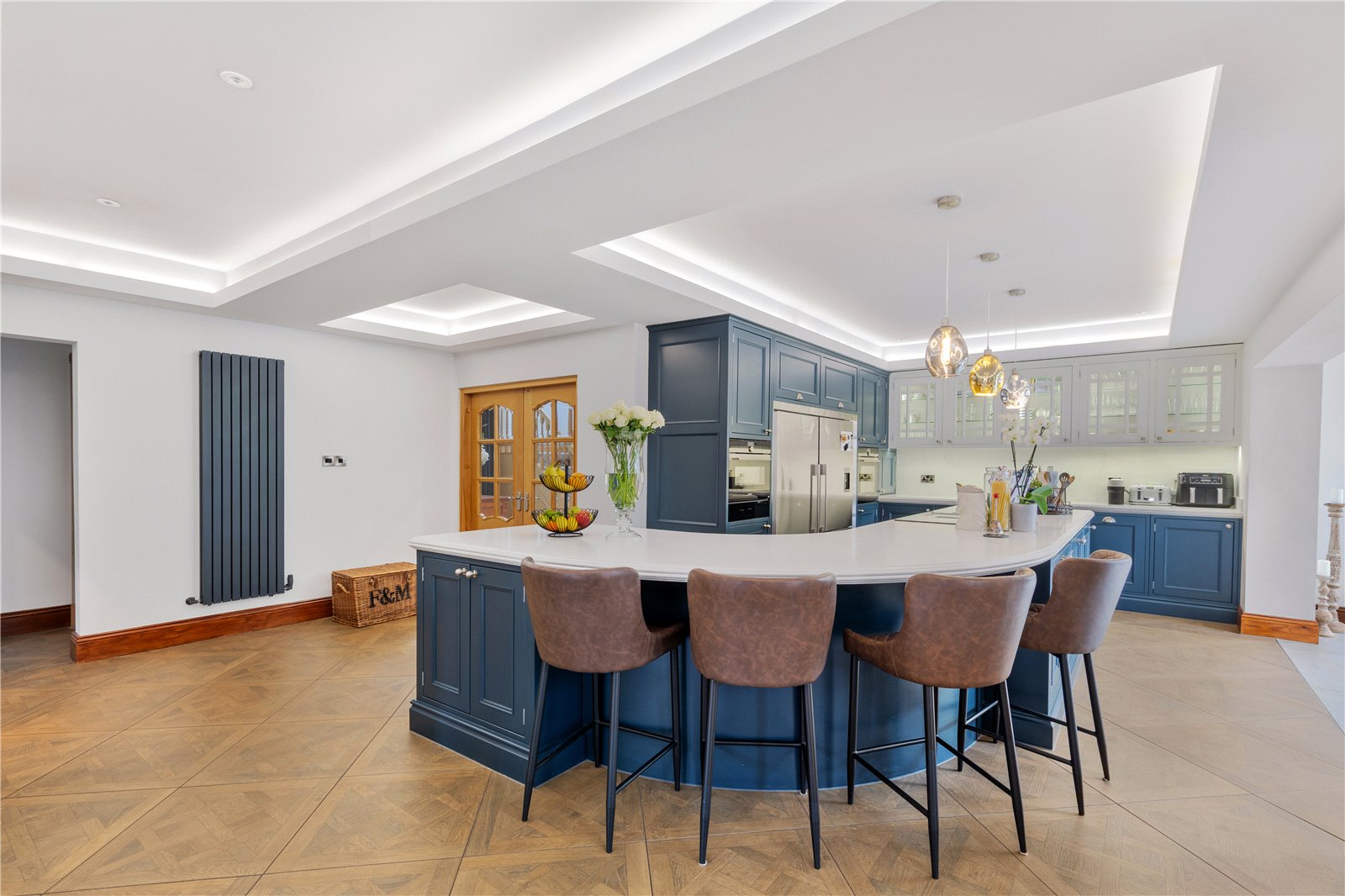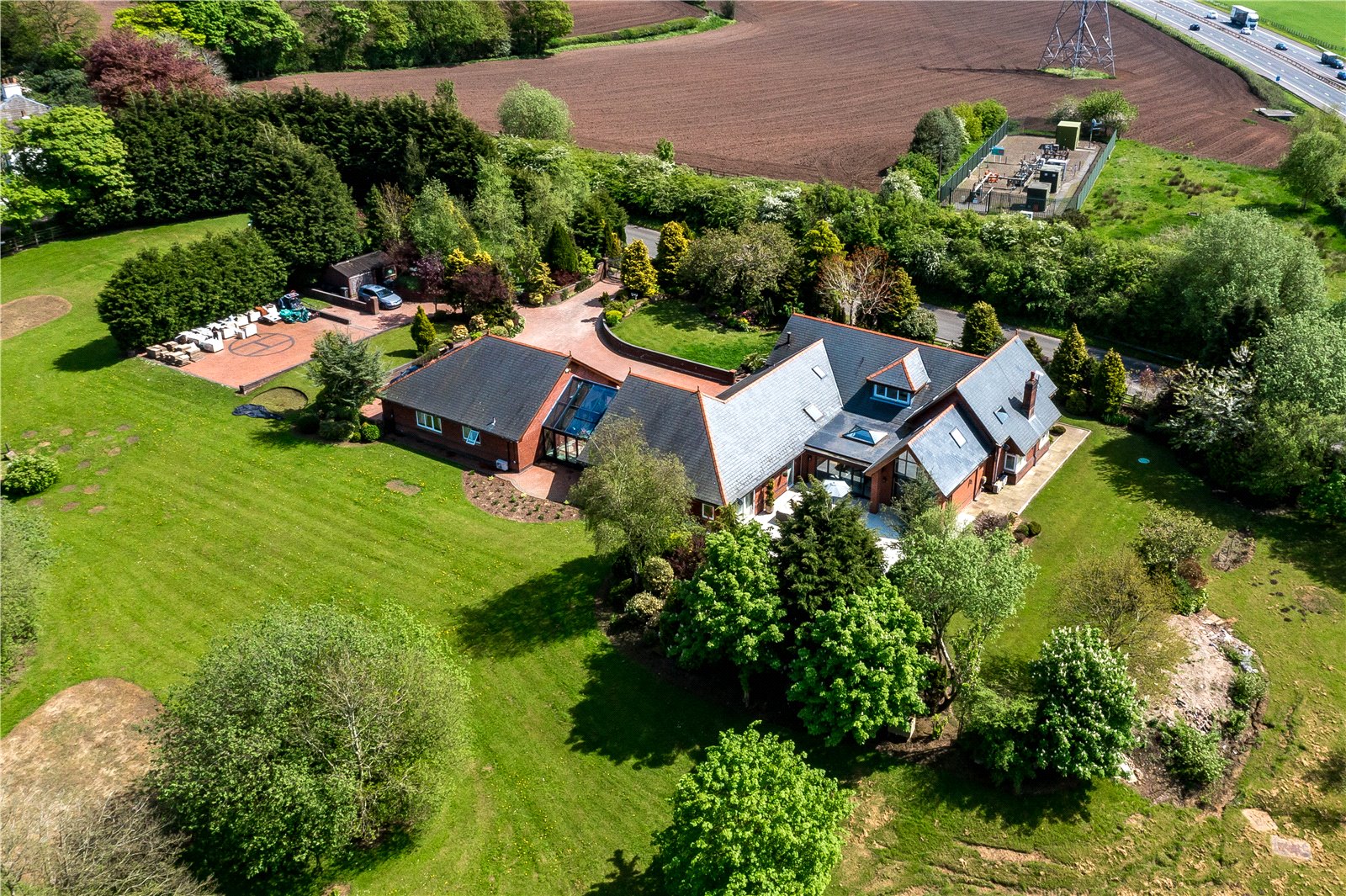 Externally from the Electric Gates a sweeping block paved Driveway provides off road parking for several vehicles and in turn leads to an Attached Quadruple Garage that is centrally heated. The block paved Driveway also leads off to a Helipad. The stunning formal gardens are principally laid to lawn and stocked with mature trees and screened with hedging. The Patio off the Living Dining Area is beautiful and laid with porcelain tile steps, which leads down to a wildlife pond.