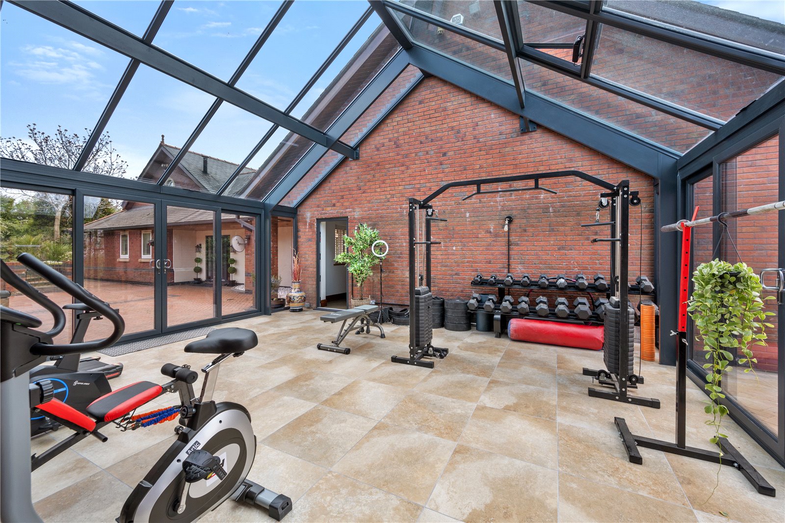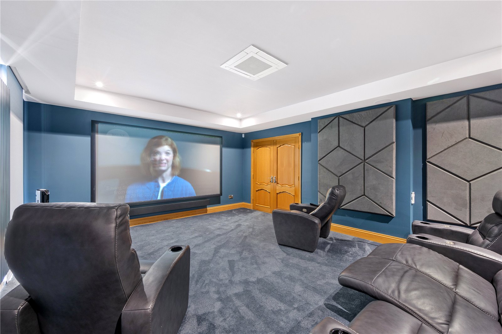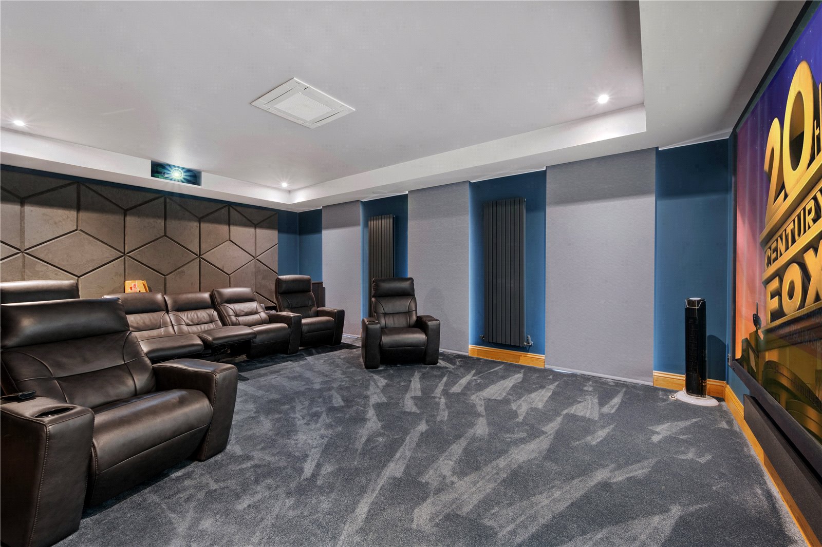 The accommodation itself affords: a Welcoming Entrance Hall opening up to a Reception Kitchen, which boasts a stunning curved Silestone breakfast bar and leads through to the Living Family Dining Area which is truly magnificent, with a Vaulted style ceiling & glass facade to one side, bi-fold-doors out to a Mediterranean style patio doors to the other, with internal doors leading through to the main family Lounge that offers a feature wood burning stove in a marvellous Inglenook Limestone fireplace. An Inner Hallway leads to the sound proofed Cinema Room, Two Ground Floor Bedrooms that both come with fitted bedroom furniture and luxury En-Suite Facilities. The Ground Floor Accommodation comes complete with Cloakroom and WC off, Study, Pantry, Utility Room and Dog Shower Room with a marvellous Atrium that is currently used as a gym, which links the main house to the Annexe.