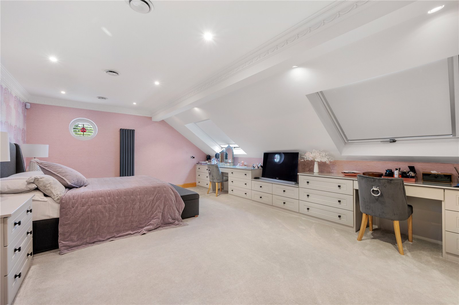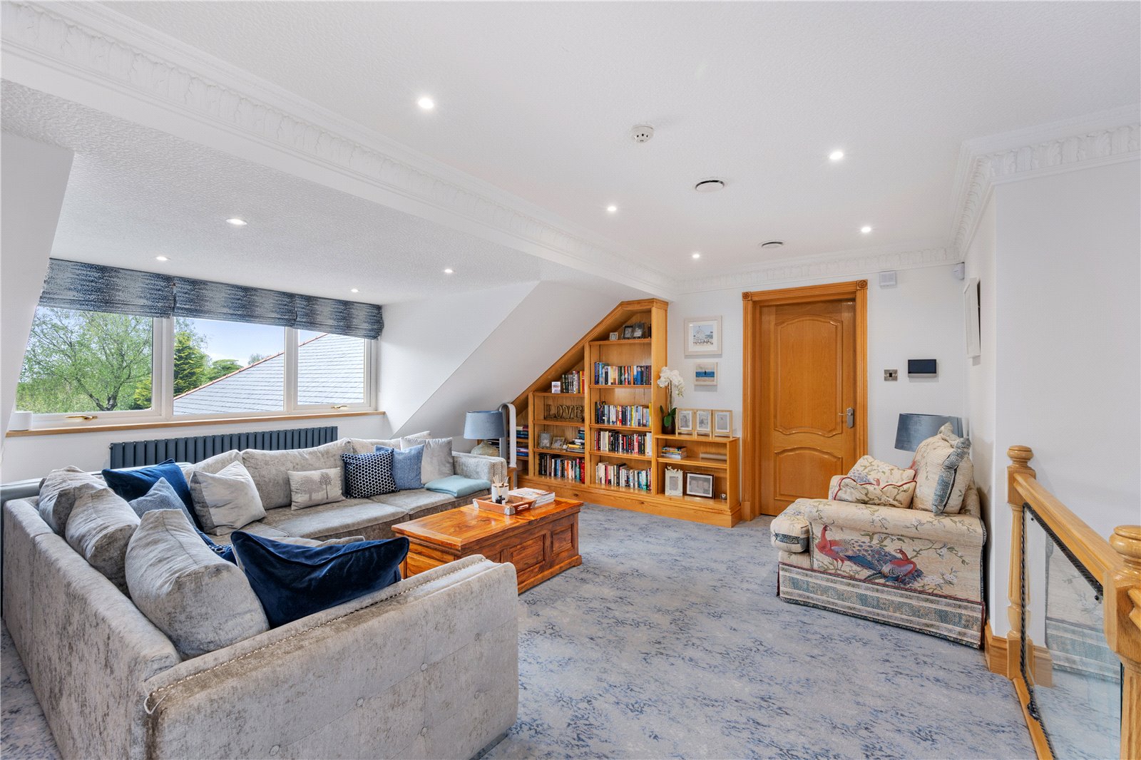 On the First Floor the Landing opens up to a fabulous space used as a Library by the current owners and comes with fitted book shelving. The Main Bedroom has fitted drawers and two dressing tables together with two Dressing Areas and a wonderful 5pc En-Suite Bathroom. Bedroom Two also benefits from a Dressing Area and a 3pc En-Suite Bathroom.