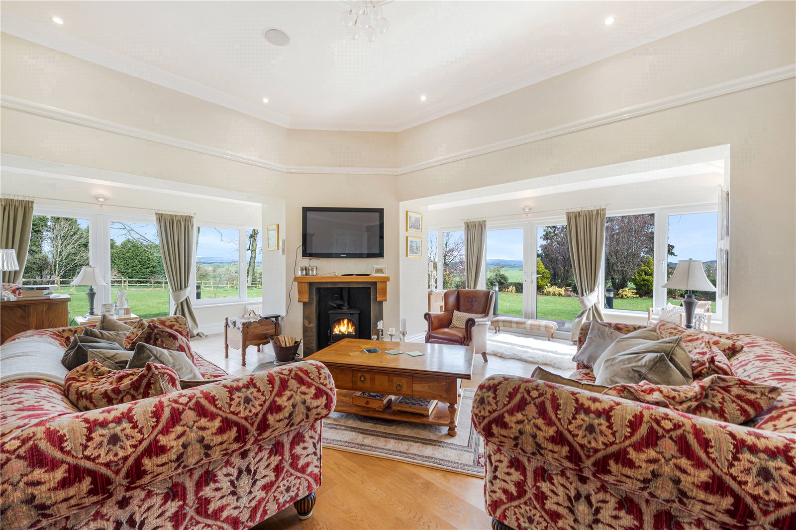 Entrance hall, snug / TV room, dining room, W.C . Large dining kitchen with high quality hand-made solid wood kitchen with Corian worktops, island unit and complete with integrated modern appliances. Family dining area attached to the island unit. Sun room with access to the garden. Utility room and second ground floor W.C / shower currently used as a store. Lounge with wood burning stove and picture windows to take in the views.