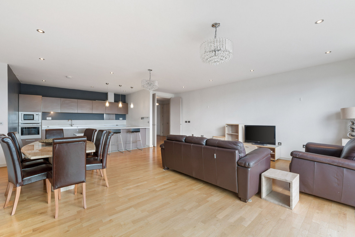 Located on the 1st floor is a stylish apartment, boasting over 770 SqFt of internal accommodation comprising of a large living area with direct access to a private balcony, separate integrated kitchen, two large bedrooms including the principal bedroom which benefits from an en-suite bathroom, built in wardrobes and direct access to a private balcony and a second family shower room. Additionally, the apartment benefits from two, secure allocated parking bays, with one of the bays having an electric car charging port.