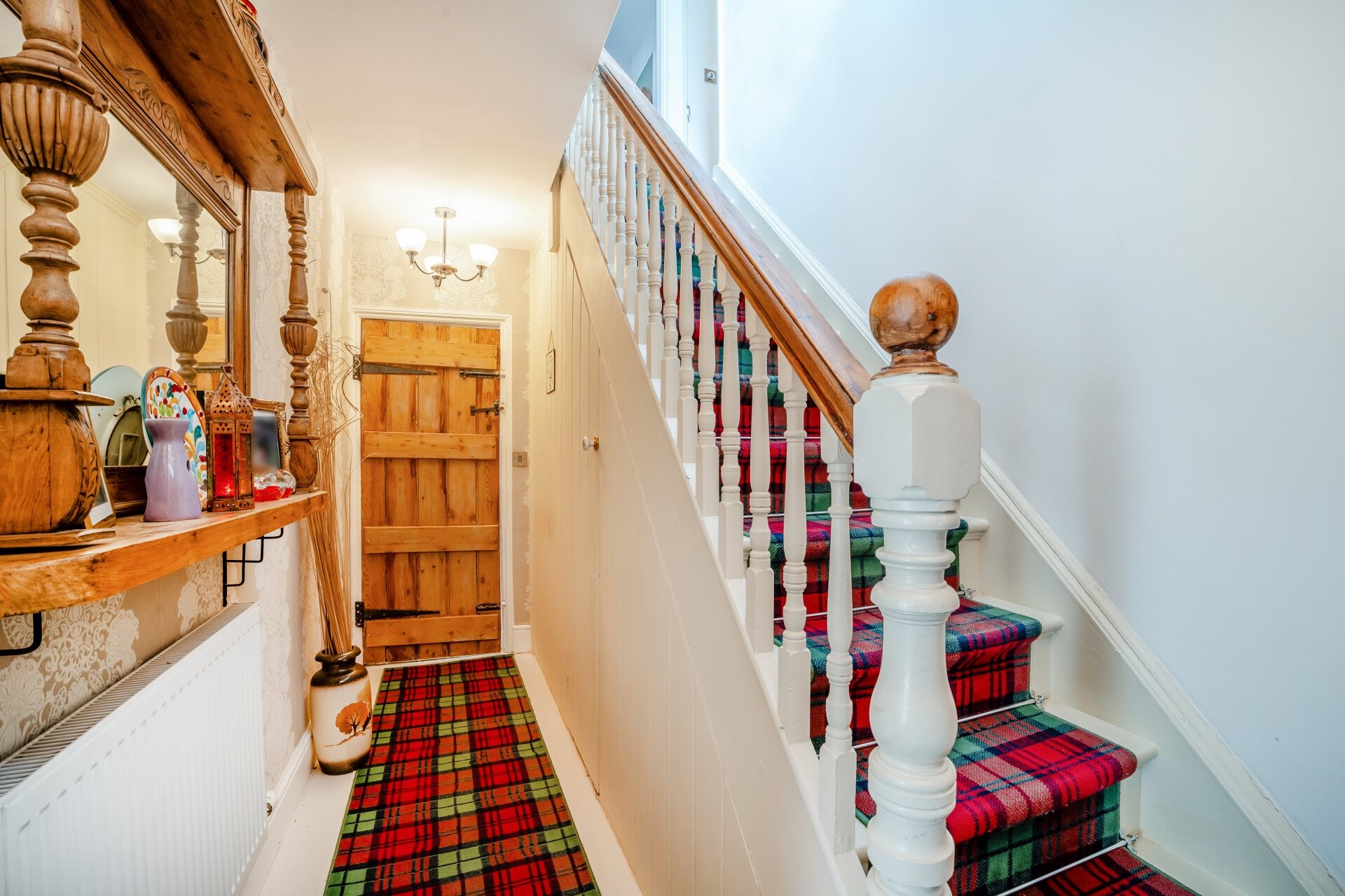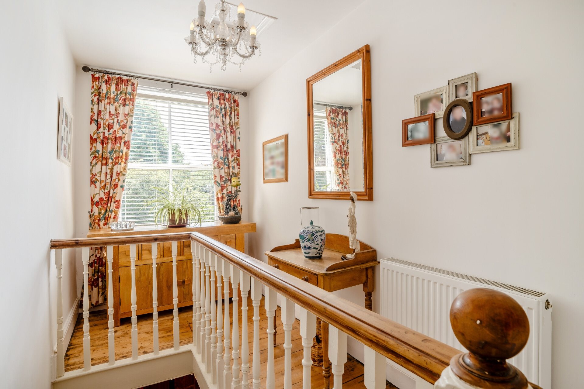 Upstairs continues the theme of character and warmth, with an open landing ideal for a small desk or dresser beneath the window leading to four bedrooms. The family bathroom is modern and stylish, complete with a separate bath and shower.