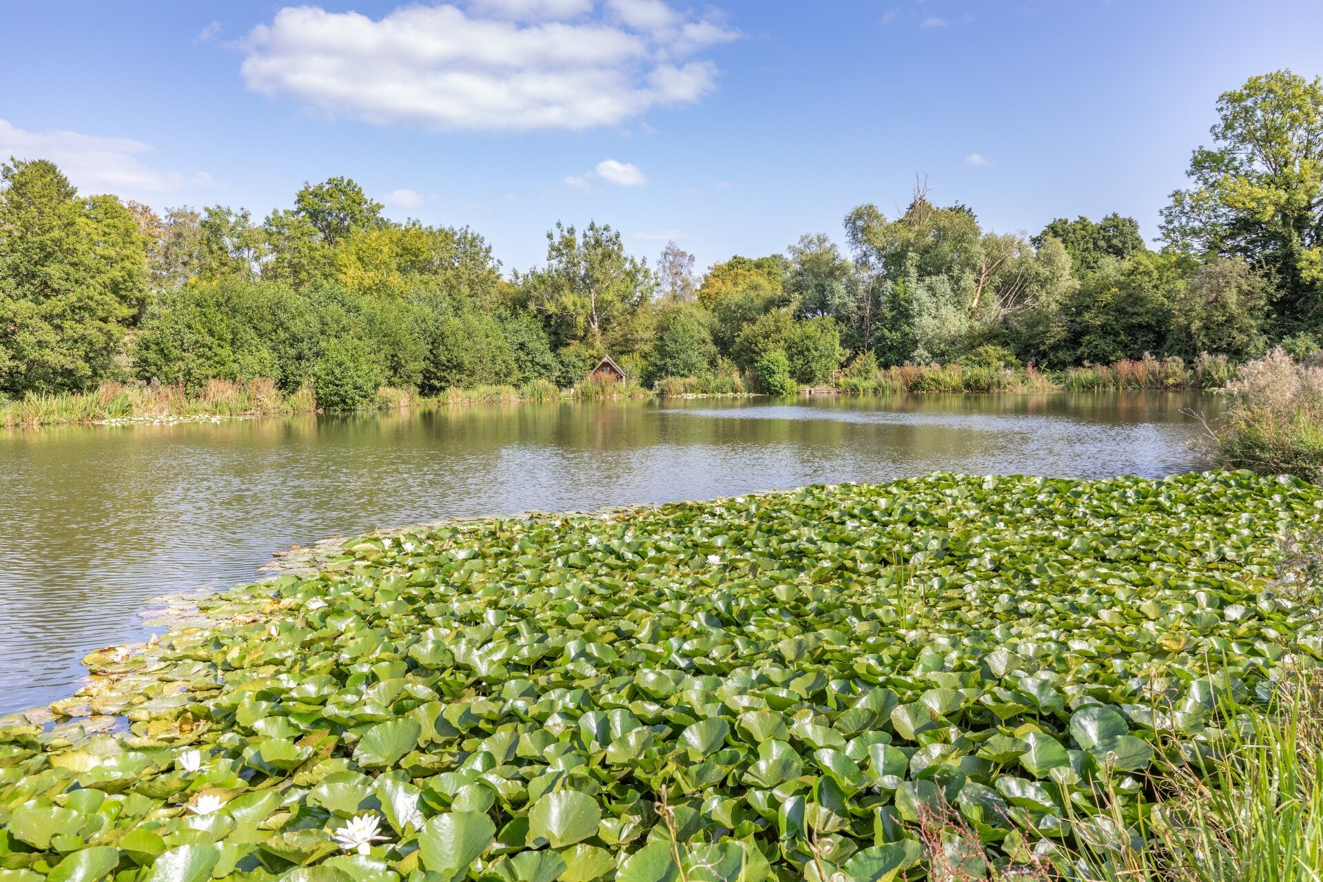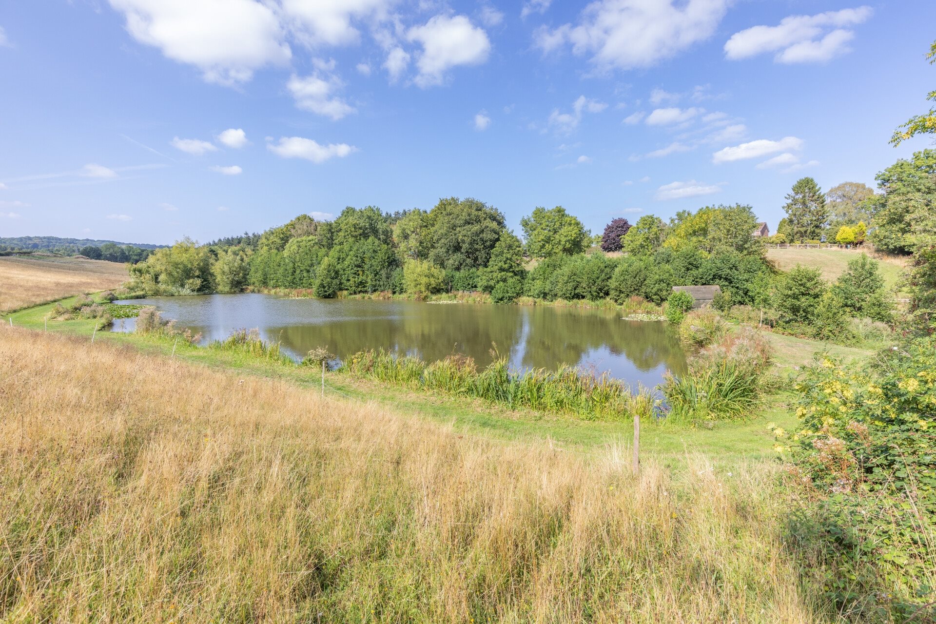 Three gently sloping paddocks and a stretch of woodland lead down to a well-stocked fishing lake, ideal for carp and coarse fishing.