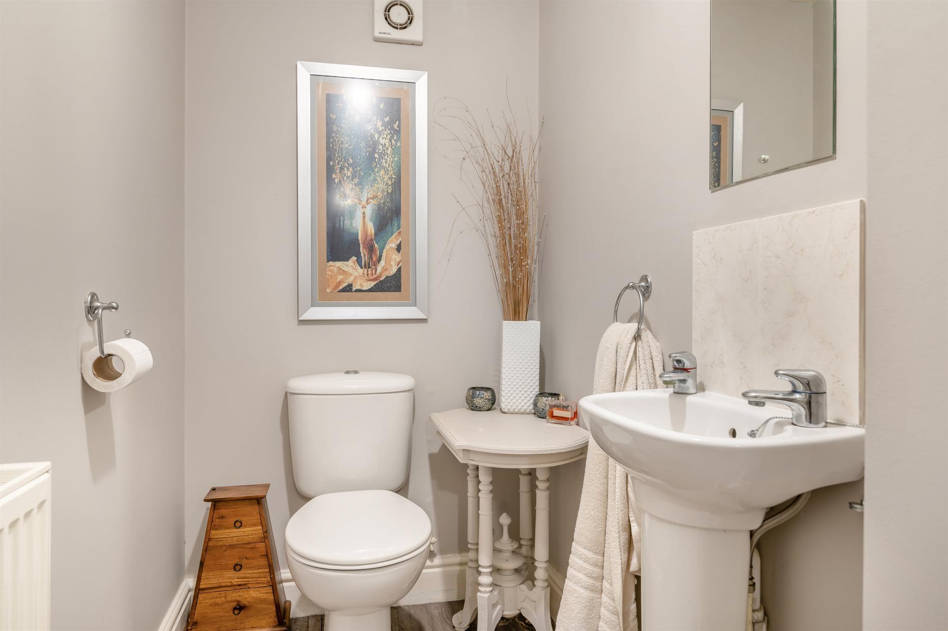 Heading down the stairs, you will find a fantastic multi-purpose room, currently in use as a home gym, and with double doors opening outside to the front of the house. This would make an excellent additional bedroom suite, hobbies space or home office. Just next door is a cloakroom with WC and wash hand basin.