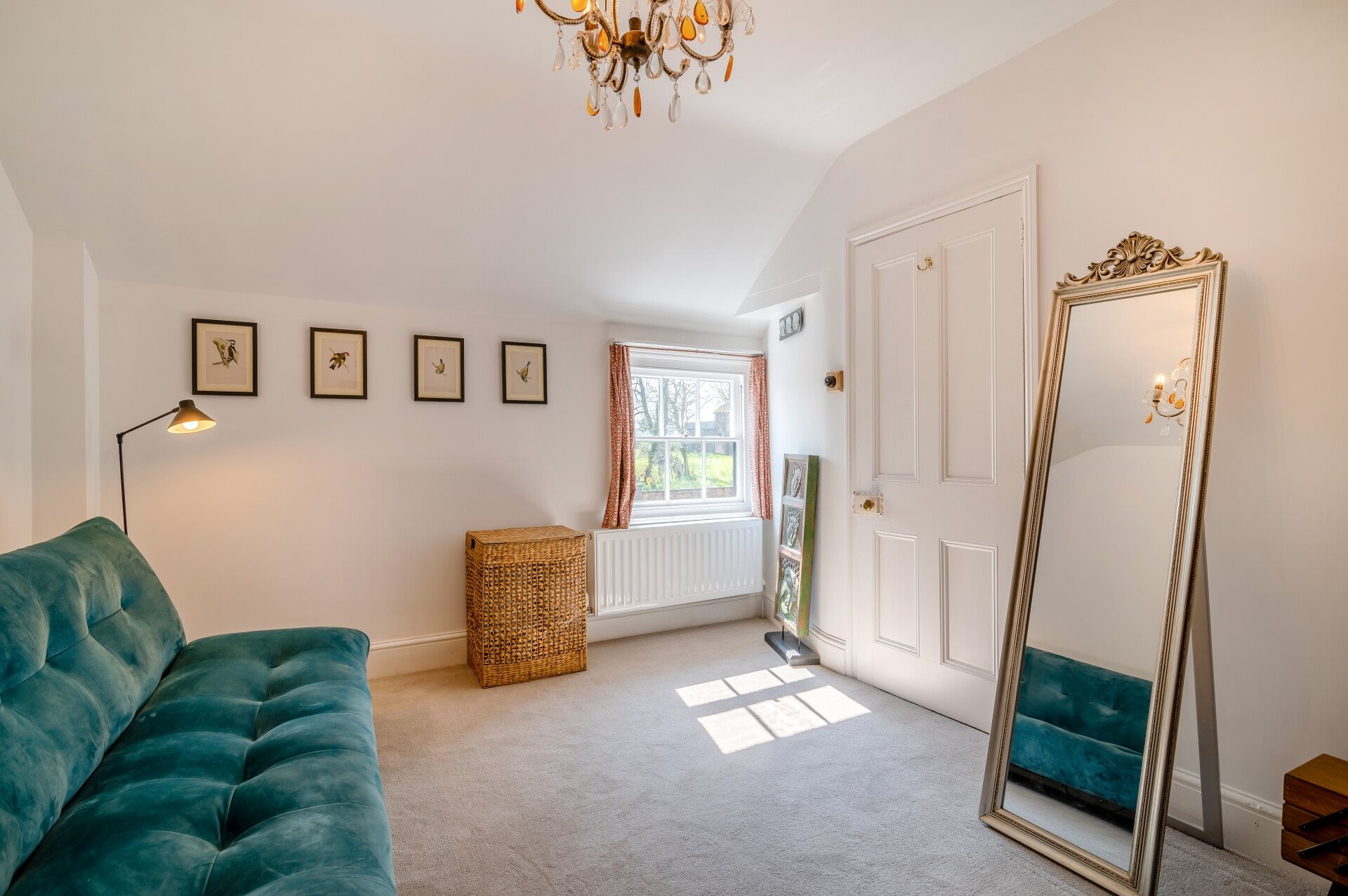 To the west side of the first floor, you have a lovely double bedroom with double aspect windows and glorious views over the rear gardens and countryside beyond. In addition, you have access down to the drawing room via the second staircase and a walk in storage cupboard.