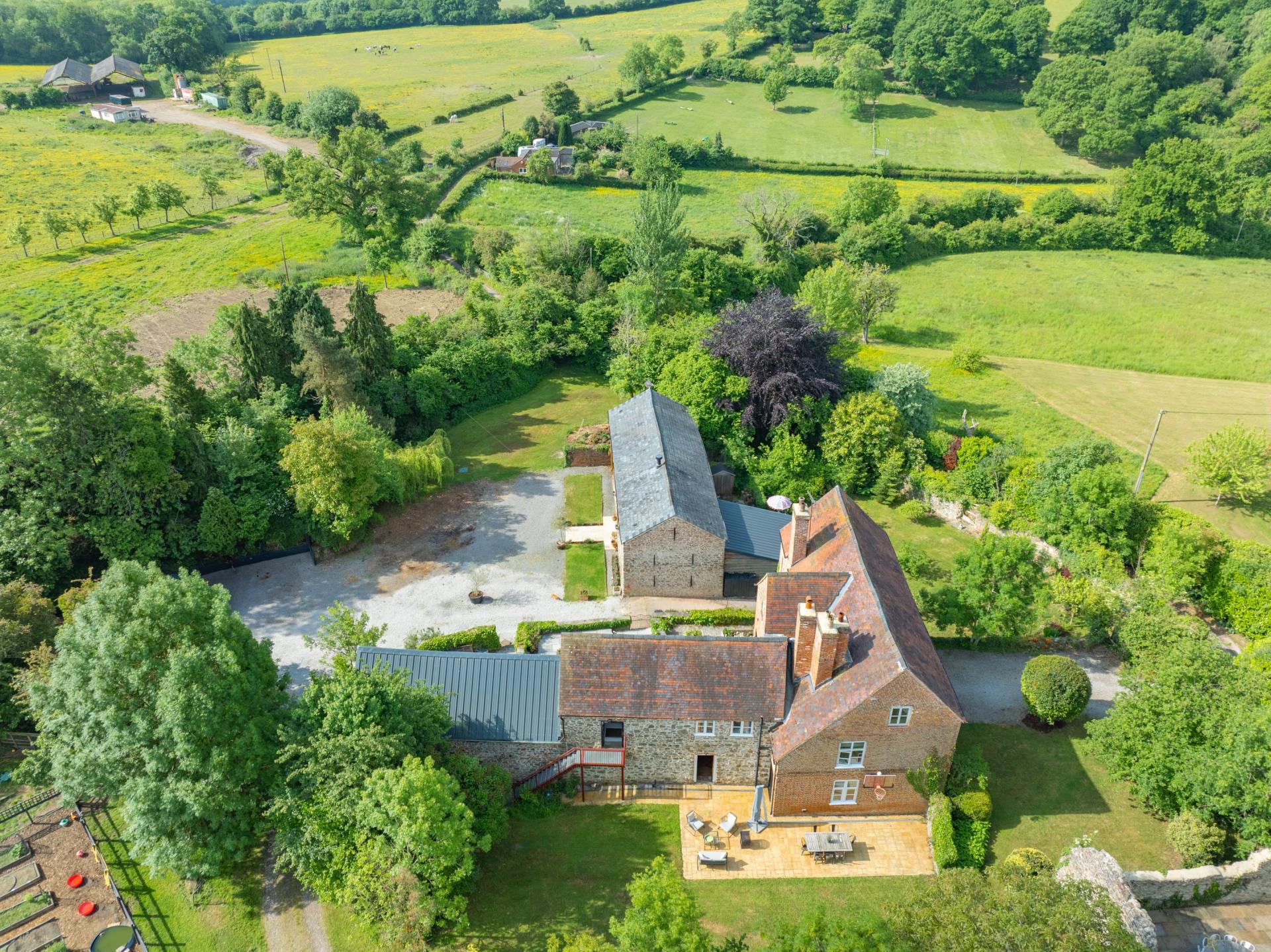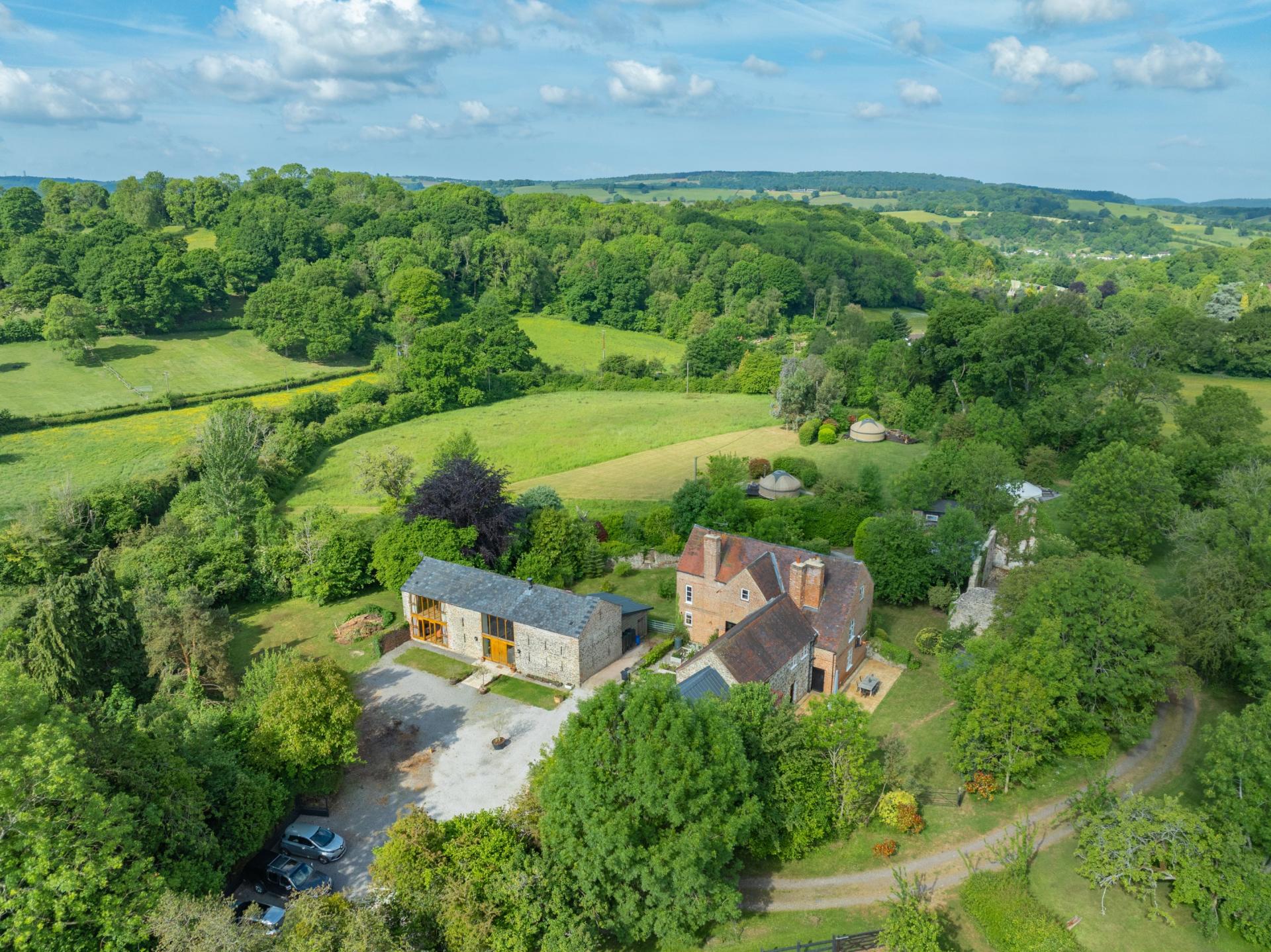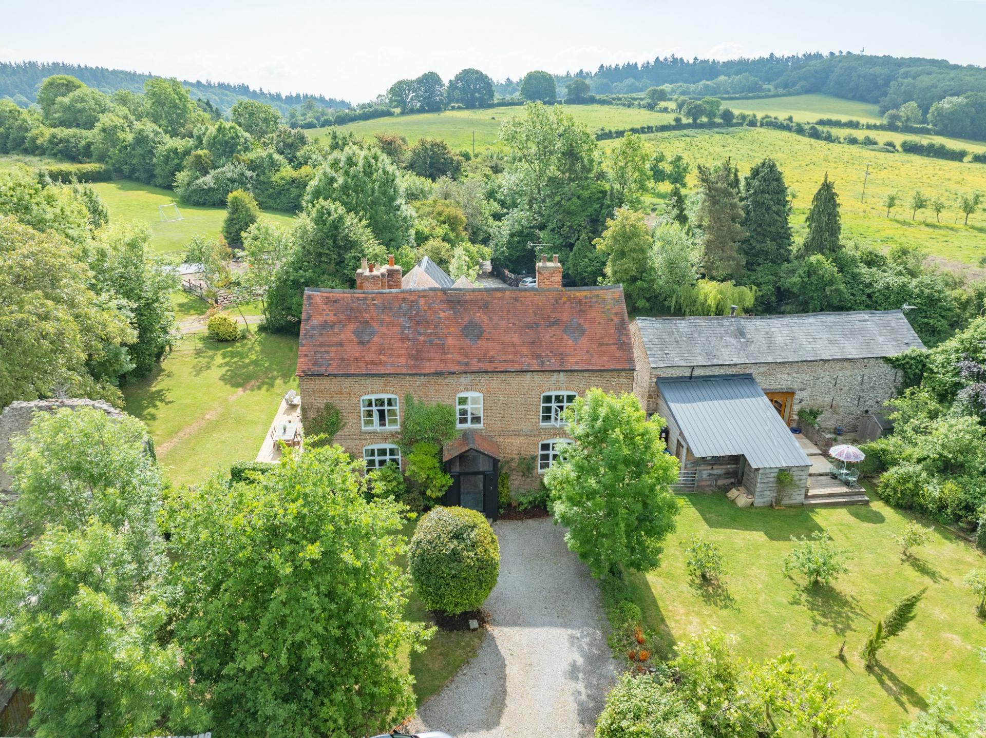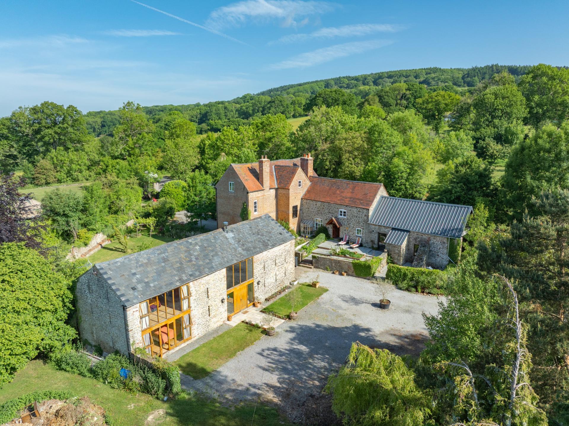- A five-bedroom Grade II Listed farmhouse alongside a detached converted barn offering two/three bedrooms