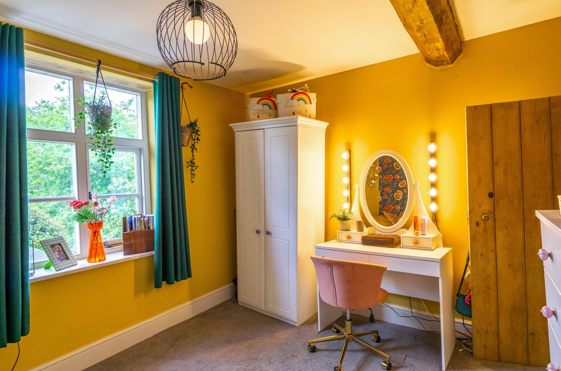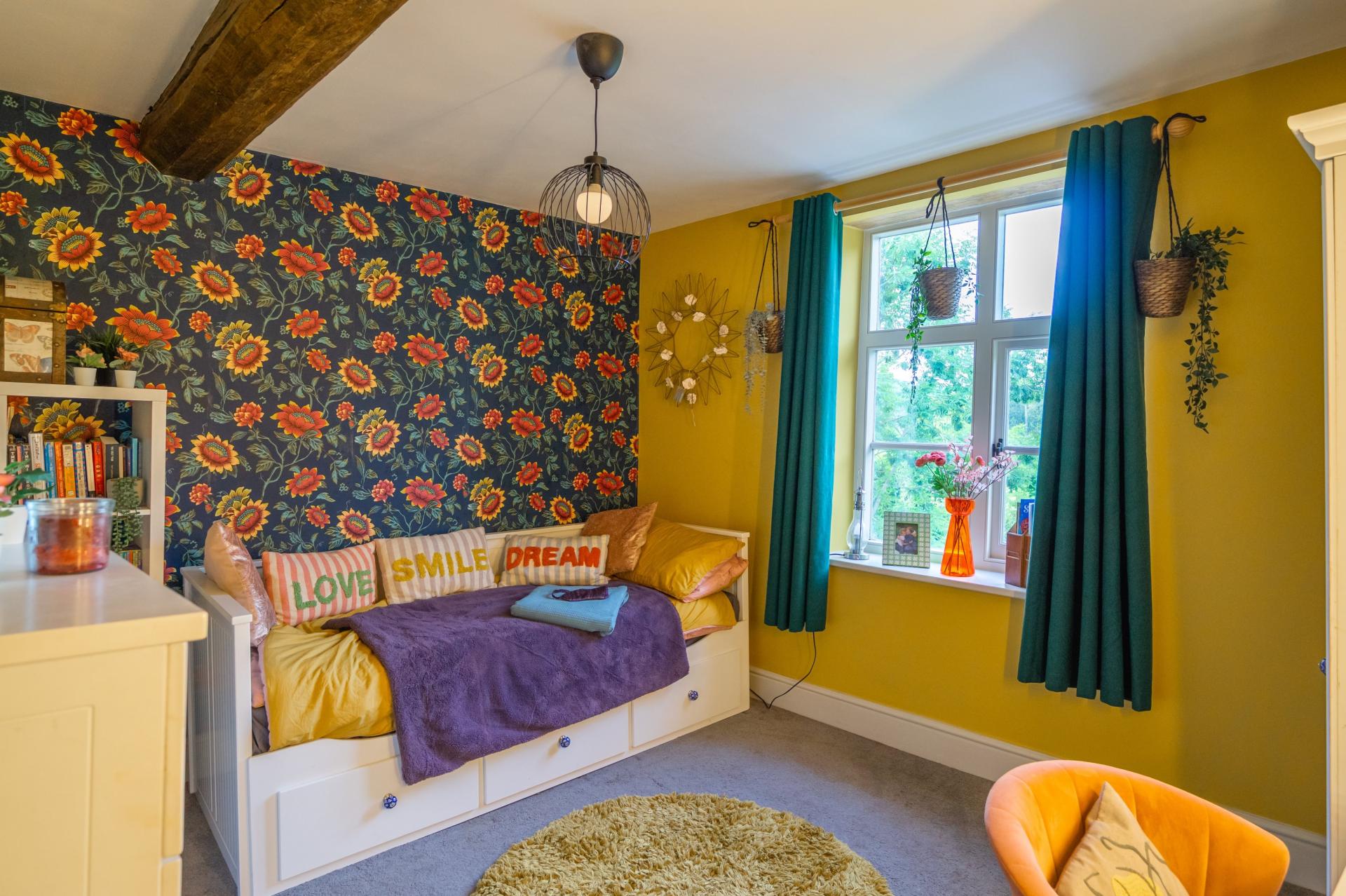 Upstairs, a generous open landing currently serves as a guest bedroom area, in addition to a further double bedroom with a fully glazed wall and a separate bathroom.