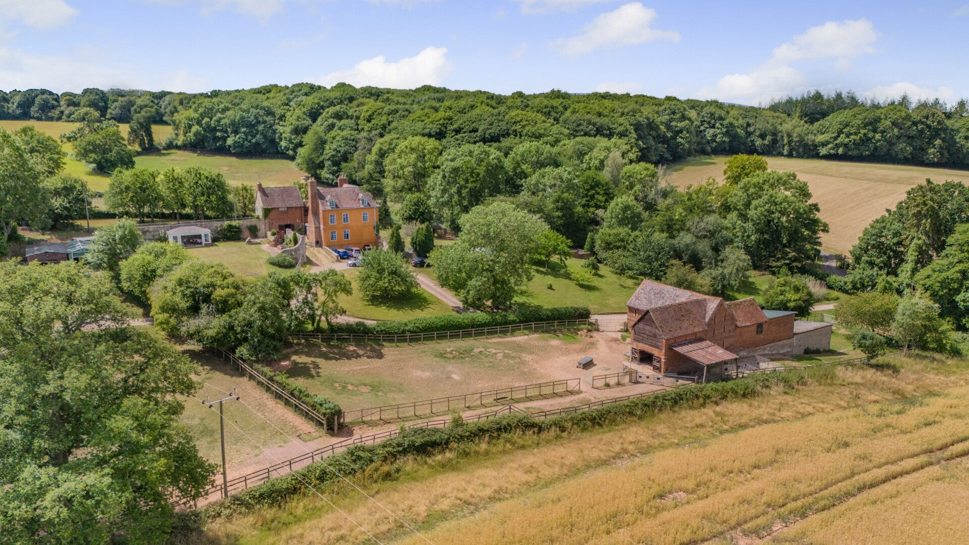Outside - A long driveway leads past a beautiful traditional brick outbuilding far too handsome for animals, yet currently used as luxury accommodation for some very special four-legged residents. With huge potential to be converted into further living space (subject to the necessary planning consents), it sets the tone for the quality and character found throughout the this rural property package. The driveway ends at a turning circle with ample off-road parking, then splits off to two garages and on further to a modern four-bay open-sided barn.