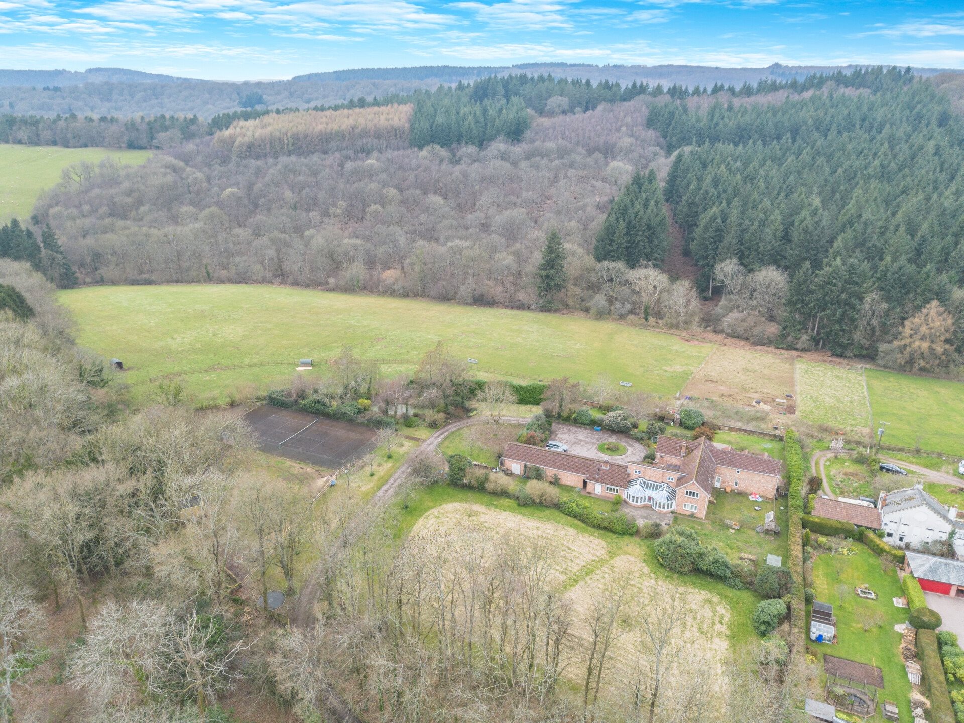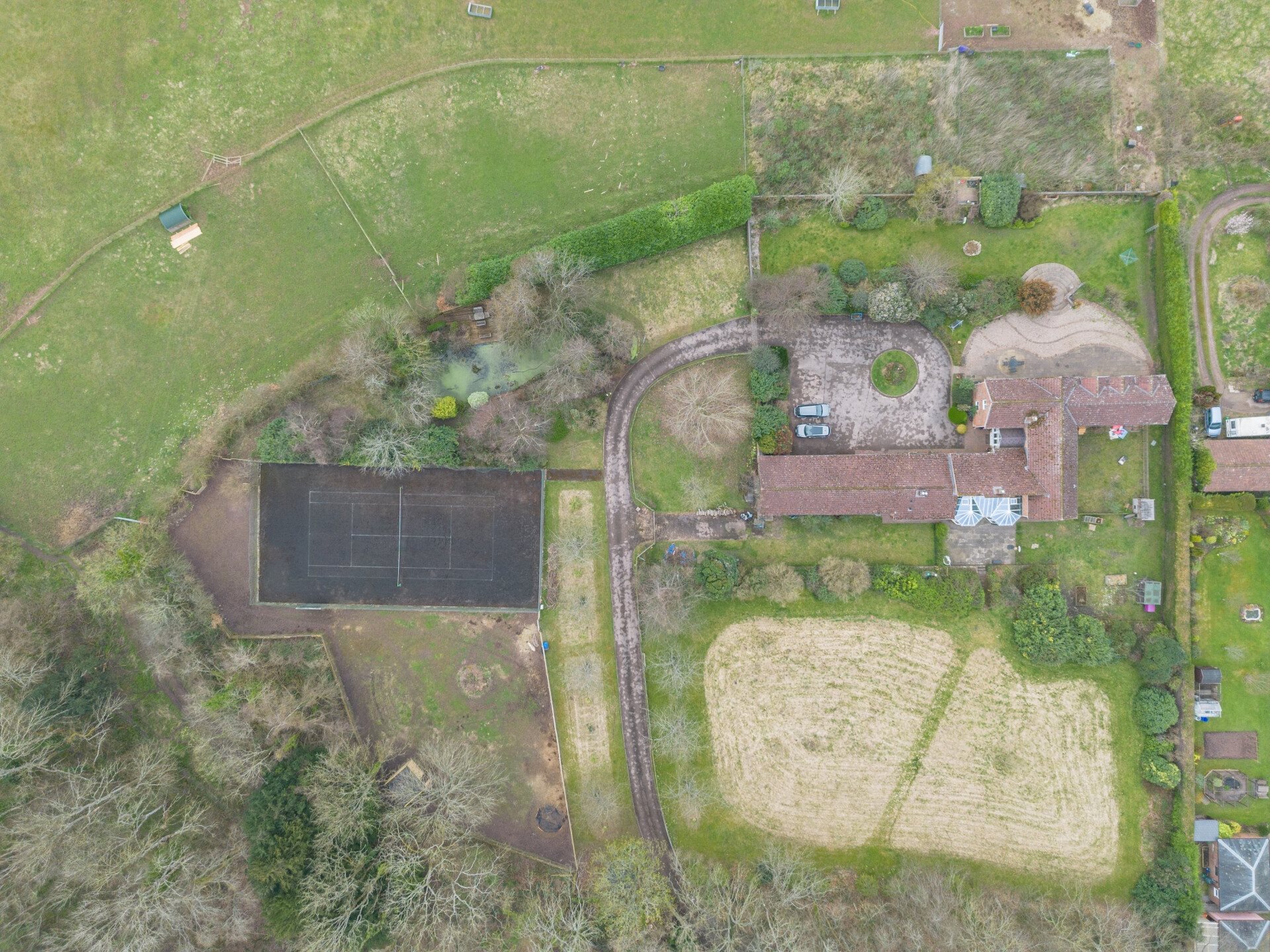 The gardens and grounds are both tranquil and beautifully maintained, featuring an abundance of fruiting trees and blooming flowers, including David Austin roses. There is a wildlife pond with a seating area, as well as a raised deck overlooking neighbouring fieldsan idyllic spot for watching deer and birdlife. A tennis court provides an active outlet, while two paddocks offer further space, one with a bluebell woodland border and the other currently used as a pony paddock. A woodstore is discreetly tucked away.
