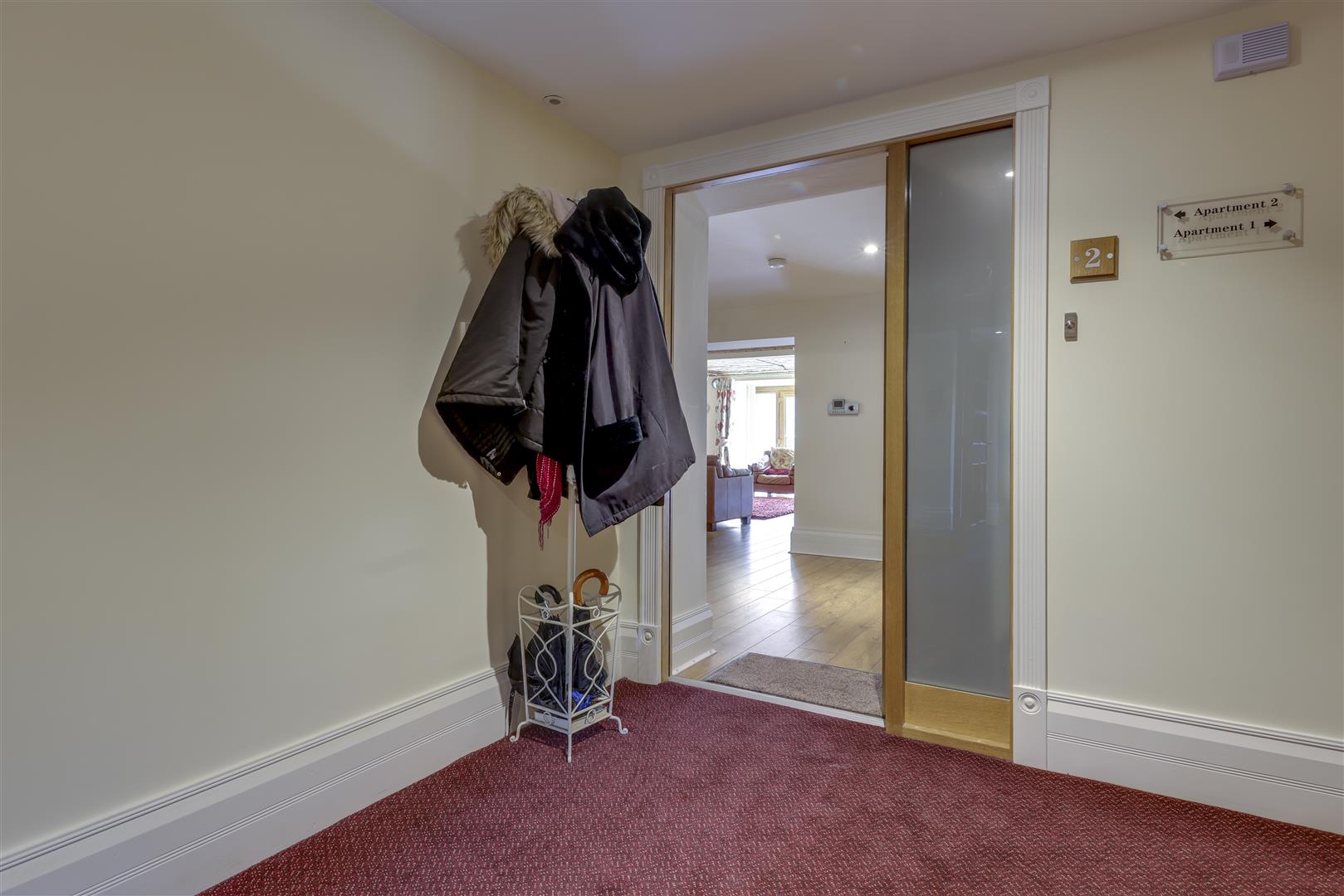 With the further benefit of its own dedicated garden area, itself a generous space and accessible directly from both the Lounge and Master Bedroom, outdoor entertaining is a real pleasure too. Inside, this gorgeous home is impeccably presented to the highest standards, with a wonderful combination of contemporary styling and décor, together with stunning architectural features. The Lounge and Dining Room areas together, amount to over 600sqft on their own, offering ample space for relaxation and making receiving guests an absolute pleasure. Retaining the best of the building's original features, this property offers lovely views out over its own and Lea Bank's exquisite gardens, while providing an idyllic and welcoming retreat within a unique private setting.