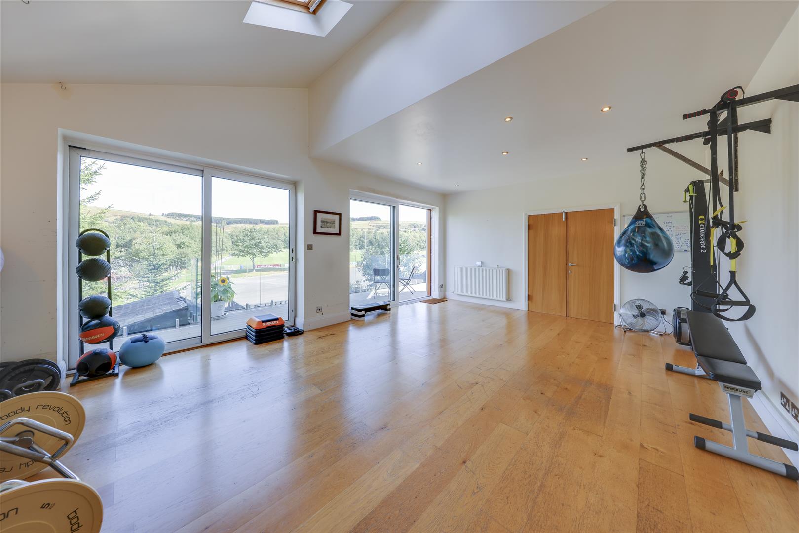 Externally, to the front of the property and setting it well back from the road, the Front Garden with mature hedging surrounds the off-road Driveway with Parking for several cars. To the rear, the extent of improvements can be clearly seen with the extension opening out through large sliding doors to the raised deck with its glazed balustrade make the most of the views, while the clever use of tiering leads you to the lower deck / garden with seating area and of course, the excellent Garden Office too.
