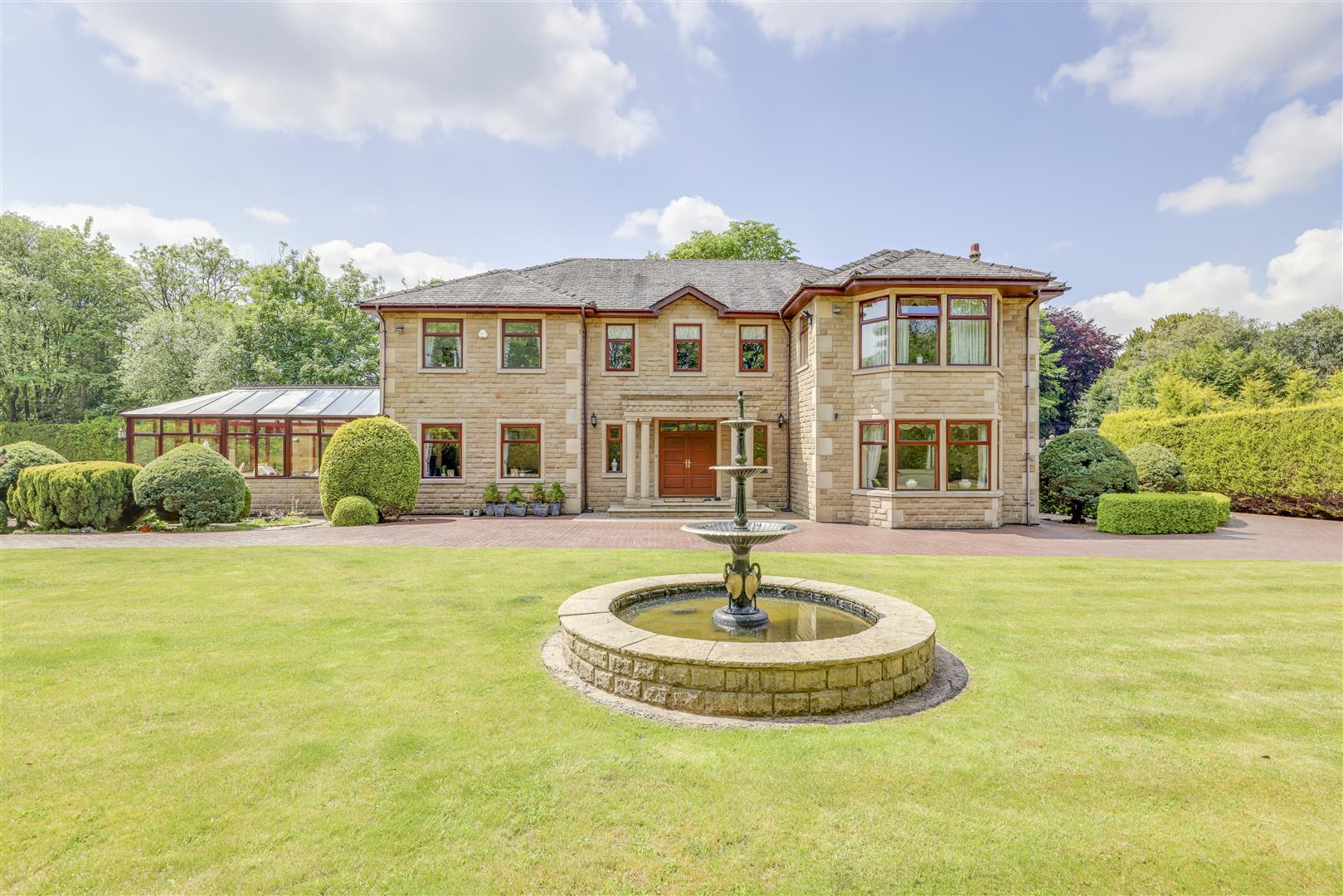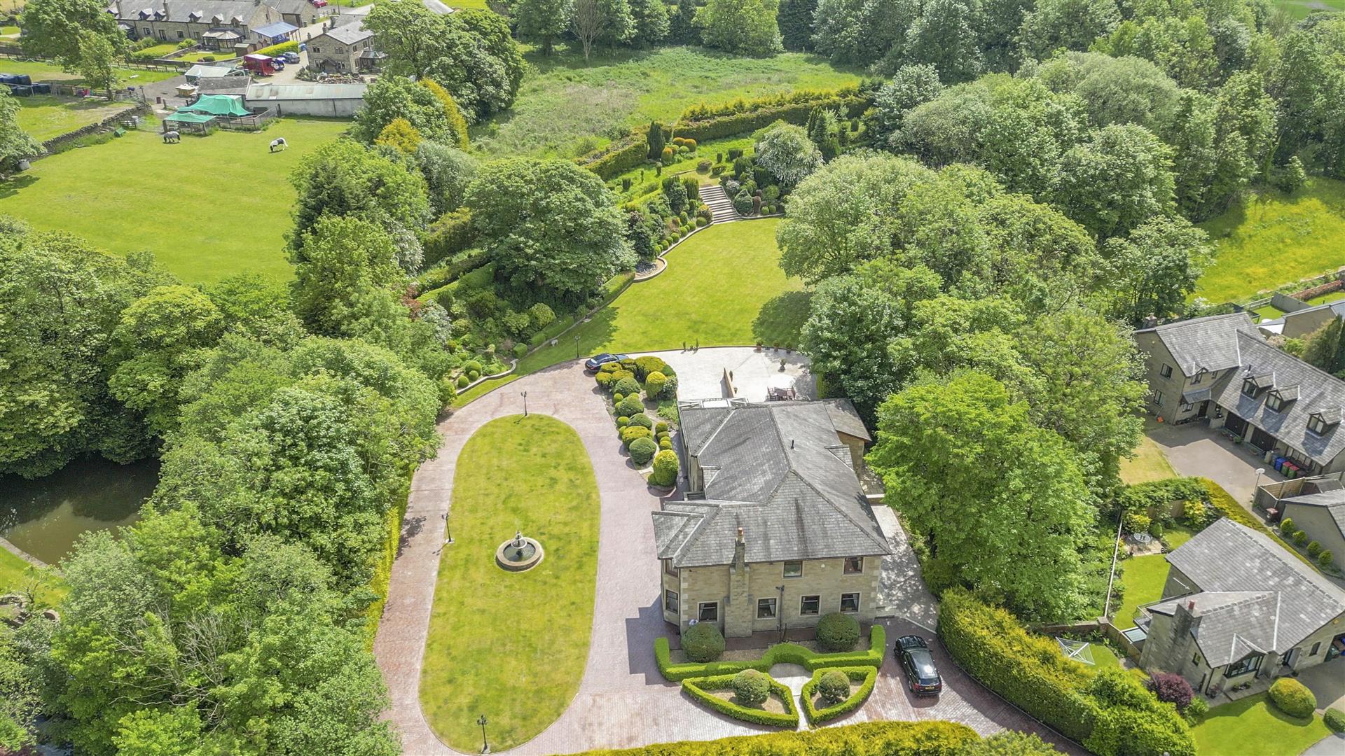 Rosebank, Stubbins, Ramsbottom, Bury is quite simply, a fabulous family home which ticks every box and does so to great effect. From its private, electric-gated entrance to its stunning, superb grounds, the property is truly outstanding. Approaching via the expansive encircling driveway, you are initially greeted with a wonderful exterior bounded by mature borders, beautiful lawns and the central water feature. Gardens and grounds really are breath-taking here and are cared for to an exceptionally high standard by the vendors themselves.