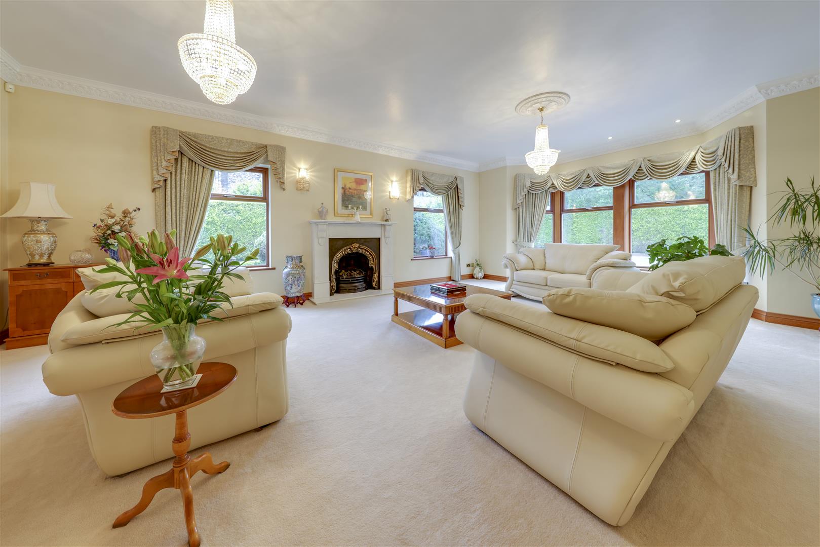 On the ground floor are further multiple receptions boasting lovely outlooks over the grounds, while the generous dining kitchen is also joined by a separate utility room which itself, has further secondary cooking facilities. There is also of course, good size downstairs WC & cloaks provision.