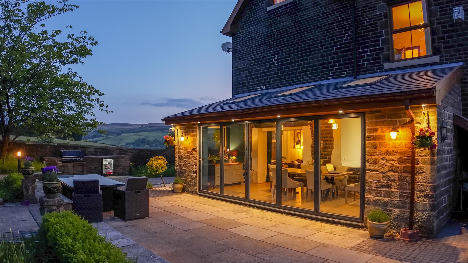 A superb, 6 bedroom detached home in a prominent position with expansive panoramic outlooks. Excellent 1/3rd of an acre plot with gardens & grounds. Ideal entertaining and family area with multiple reception areas and large bi-folding doors extending the living space into the garden. Recent Kitchen & Bathroom. Garden store, lawn, patios, kitchen garden, greenhouse and outdoor kitchen / BBQ area, all set within stone walled and gated boundaries. Lovely outlooks include towards Manchester City Centre, Peel Tower, surrounding fields and sunsets over Winter Hill in the distance, while motorway links and great amenities are just minutes away too.