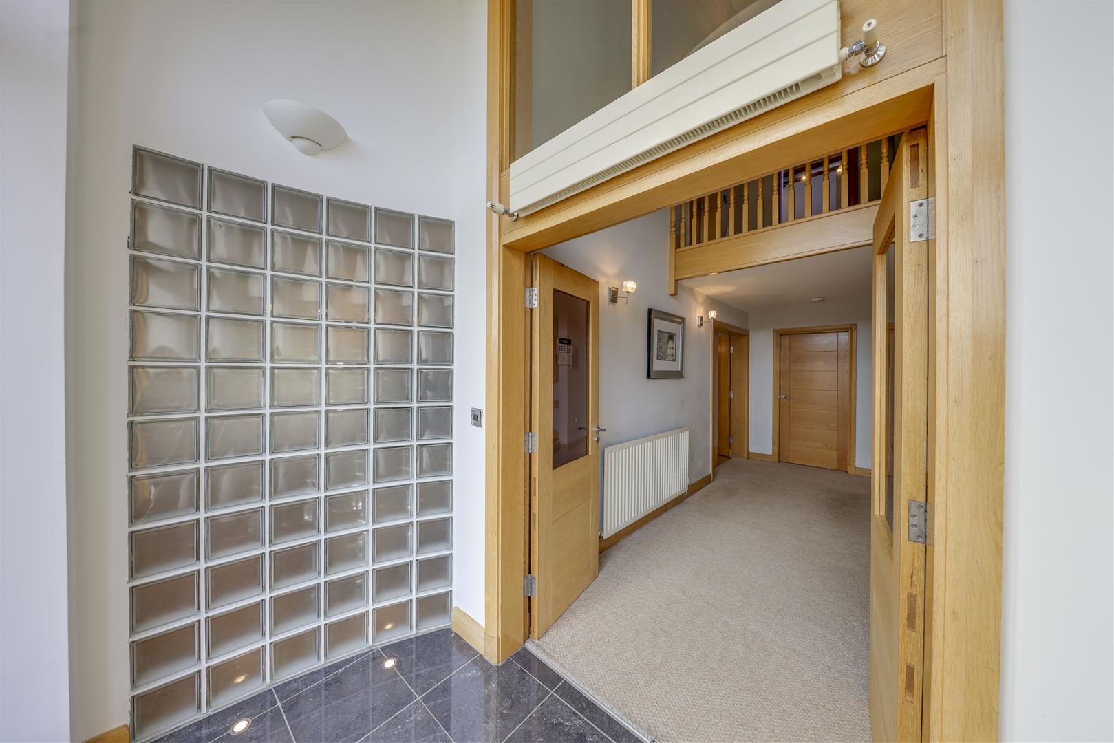Thoughtfully designed to meet the demands of contemporary family life, Folly Clough Farm harmoniously blends refined interiors with adaptable living spaces. Step through the impressive and inviting entrance, featuring a striking barn window and curved glass block walls, into a spacious hallway that sets the tone for this home's elegant presentation. The ground floor unfolds to reveal a well-considered layout, featuring two inviting reception rooms, a versatile office, and a sunlit orangery currently serving as a fitness space. The main reception room exudes warmth with its lovely open fire, while the second reception room offers a cosy retreat / cinema room area. Flowing seamlessly from the dining room is a fully-equipped kitchen with a breakfast area, pantry, and access to a cellar area too.