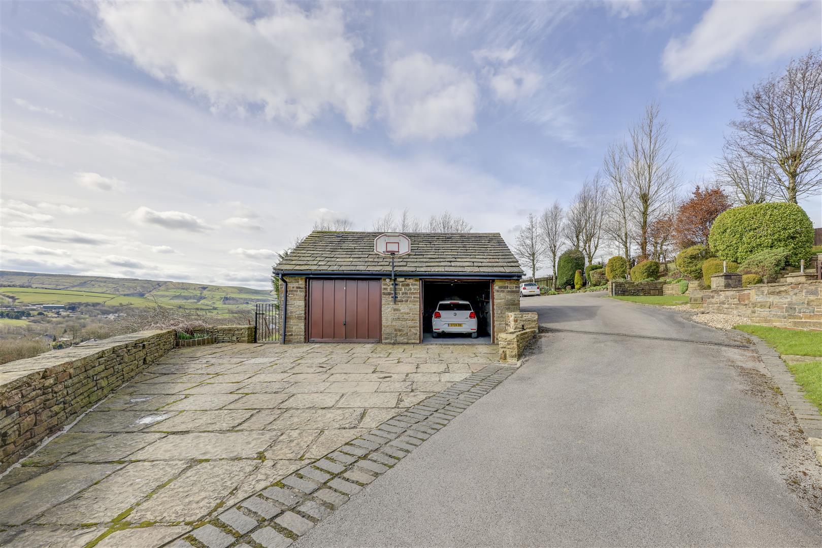 Externally, Folly Clough Farm boasts an expansive plot adorned with meticulously landscaped gardens and a sizeable field beyond and to the rear, inviting outdoor enjoyment and a variety of uses. The property further benefits from a detached double garage with workshop and ample storage space, potentially offering further scope, subject to obtaining planning permission of course. There is also a sizeable solar bank a the property, along with 2 feature log burners, all of which further enhance the property's eco credentials.