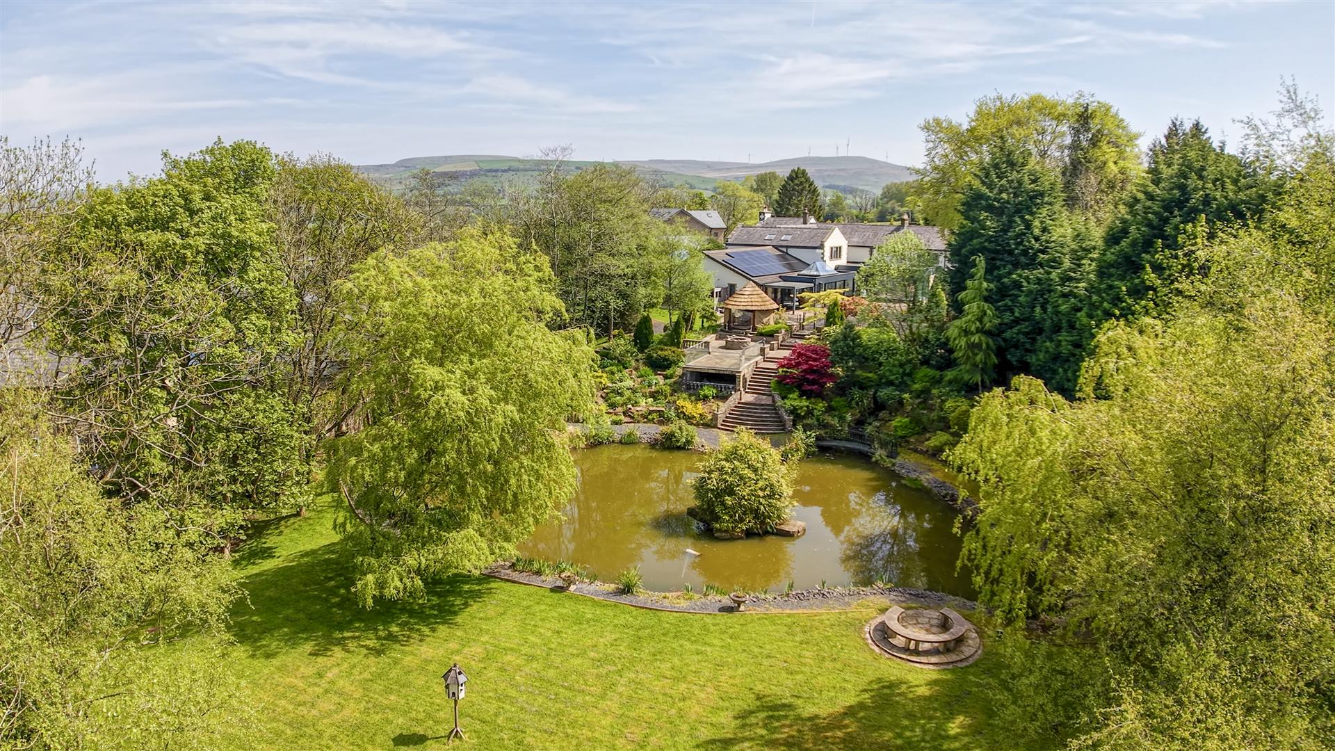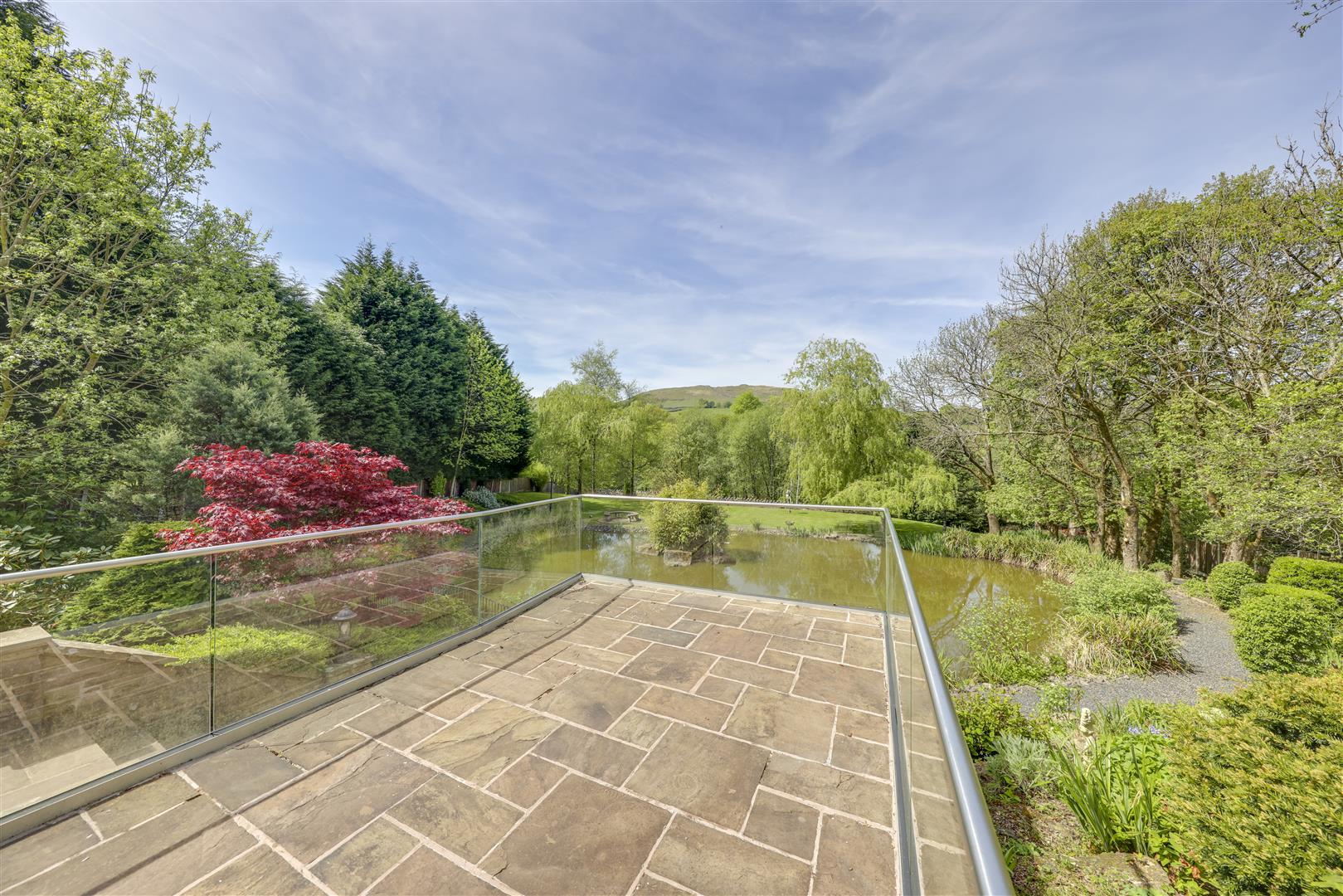 A sensational rear garden provides a haven for this property's residents. A large patio leads down to the extensive rear garden and large pond, offering myriad delightful spots for al fresco dining and entertaining, with ample space for seating areas bordered by mature planting and boundary treatments adding privacy. To the front and side of the property is the ample, landscaped driveway and parking area with room for multiple vehicles.
