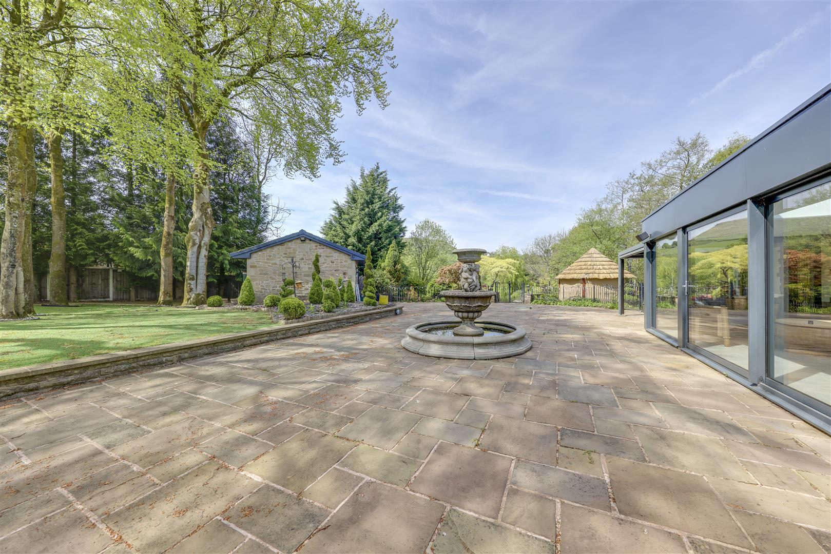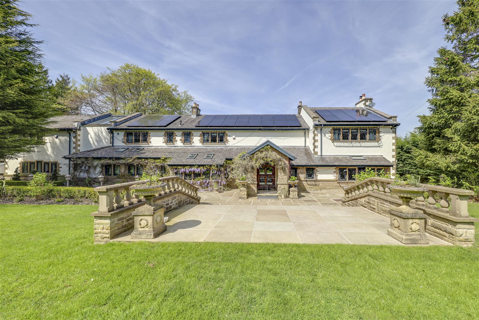 The Hollies, Alden Road, Helmshore, Rossendale is an exceptional property, set back from the road behind electric gates and mature planting, offering staggering scale with over 9,000sq.ft of stylish accommodation, on a generous plot of close to 1.5 acres . It comprises 6 spacious bedrooms, 7 bathrooms, an extensive complement of living / reception areas, a luxury full leisure suite with swimming pool, gym, home salon / treatment room, bar & games room, annex plus more. Outside, sensational gardens & grounds are home to outdoor entertaining spaces, a large pond, beautiful garden areas and amenity / outbuildings which complete the picture. Unusually for a property such as this, The Hollies is also offered FOR SALE WITH NO CHAIN DELAY.