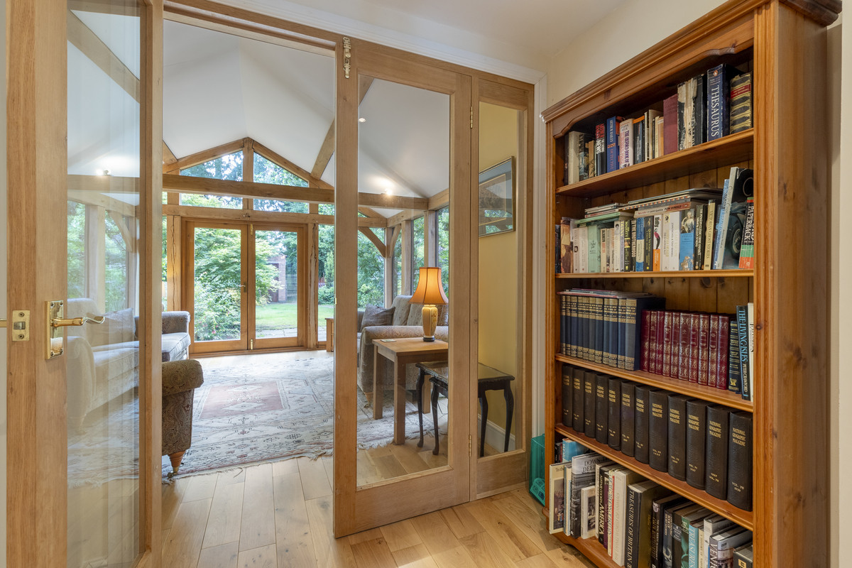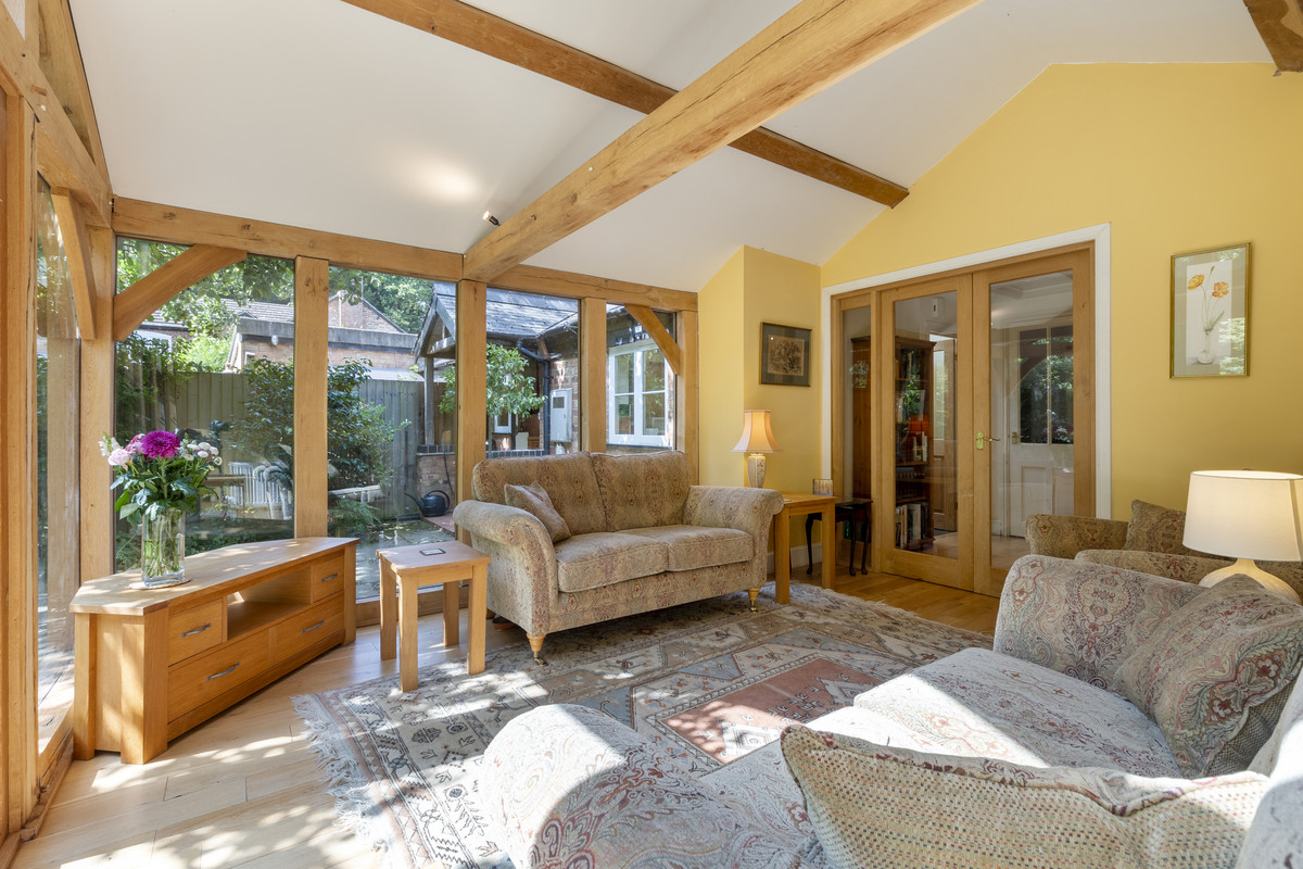 - Striking Oak Framed Garden Room - Vaulted ceilings, exposed beams and French doors create a spectacular living space filled with natural light.