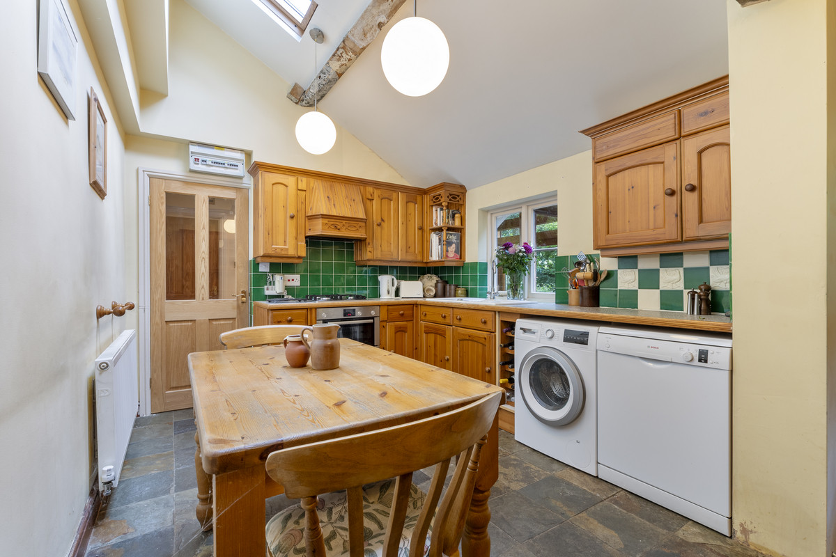The well-fitted kitchen offers generous storage, ample workspace, and room for a breakfast table, creating a space that balances practicality with charm and providing direct access to the rear garden for effortless al fresco dining. A pretty open porch off the rear door adds useful cover when searching for your keys or kicking off boots after a lovely walk.