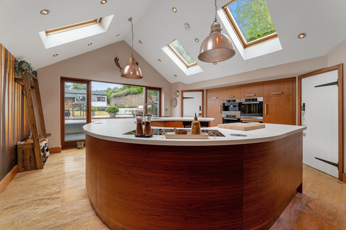 - Stunning bespoke Fraser James kitchen with circular island and bi-fold doors