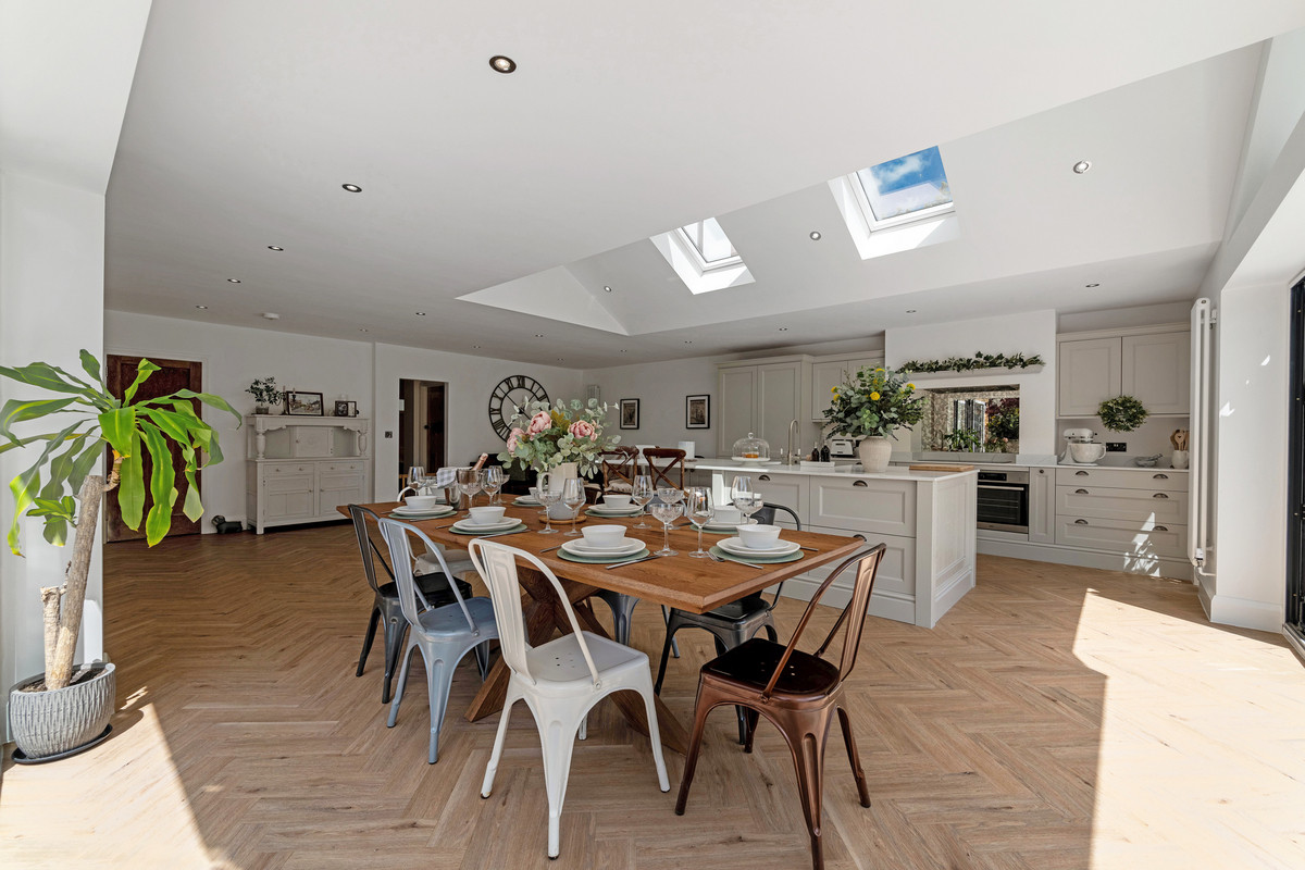 34 Rugby Road is a stylishly presented home that has been significantly improved by our present owners, with a stunning, extended kitchen/living space at the rear, four well-proportioned bedrooms, a refitted ensuite bathroom, a refitted family bathroom, two separate reception rooms, a cloakroom and utility room. The home has just under a quarter of an acre of southerly facing gardens, with a large terrace and ample off-road parking. The house has some remarkable high-quality fittings throughout with some incredible attention to detail, and is perfectly positioned a few minutes’ walk from Dunchurch village centre, with its abundance of amenities and very close to an excellent independent school, Bilton Grange. Early inspection is strongly recommended to appreciate this beautifully kept home.