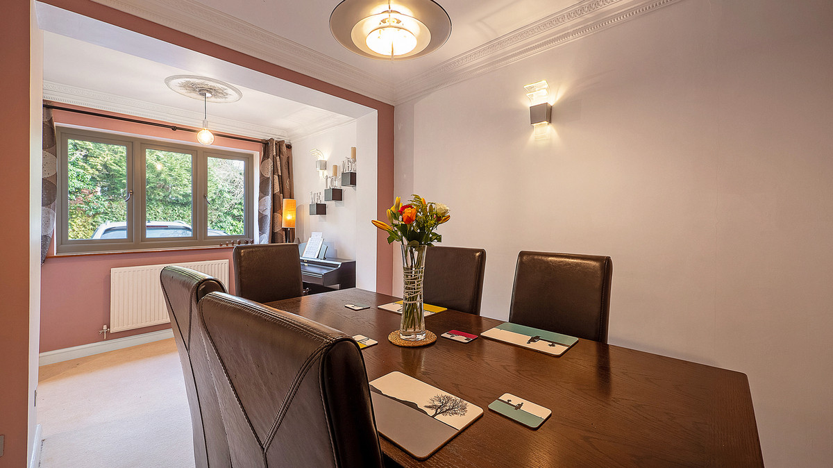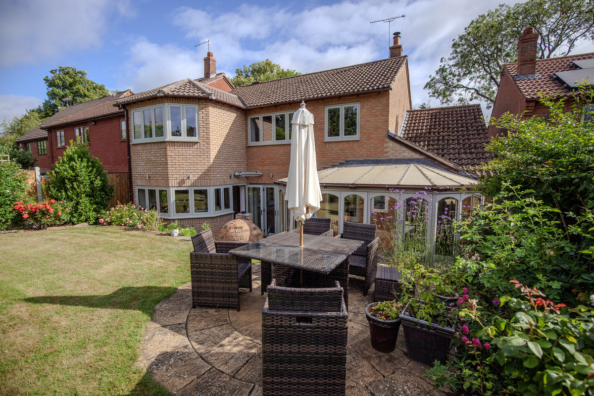 2 Red Lodge Drive, is an extended and improved detached home, situated on a private road in a small exclusive development of four individual homes, close to some of Rugby’s finest schools and amenities. The house has undergone some dramatic improvements in recent years, including the replacement of all the windows, a two-storey extension, which has increased the size of the kitchen, and the addition of a first-floor dressing room. There are four well-proportioned bedrooms, including a principal bedroom suite with a refitted ensuite shower room and dressing room, plus a refitted family bathroom. There are two large reception rooms, a conservatory, utility room and cloakroom. Outside the house in a quiet enclave, is parking for three vehicles, a single garage and some delightful, landscaped south facing gardens with some great areas to entertain. The house is also offered for sale with no onward chain.