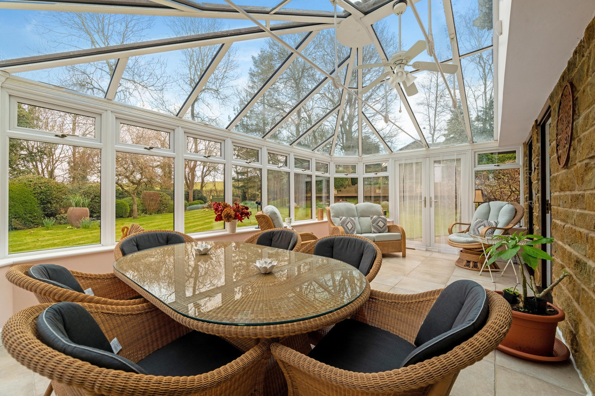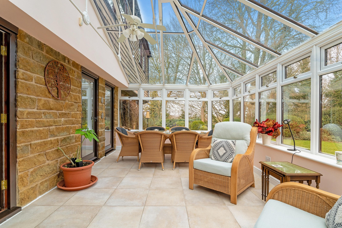 - Three generous reception rooms plus a conservatory overlooking the rear garden.