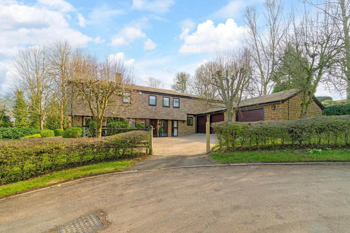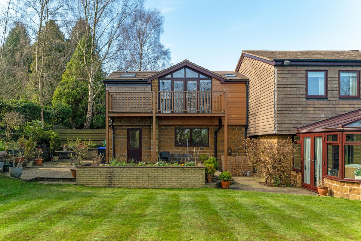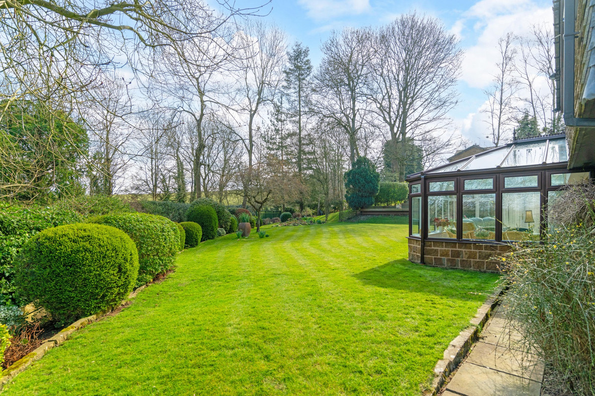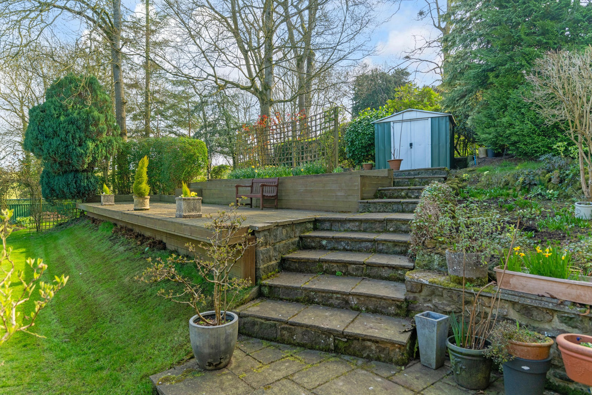Surrounded by lush, mature gardens, Holly Bank enjoys a variety of outdoor spaces, including lawns, mature trees, and beautifully landscaped borders. An elevated York stone terrace offers an ideal setting for outdoor dining and entertaining, while an additional decked terrace and barbecue area provide further options for relaxation. A garden shed discreetly conceals an oil tank, and a wooded area adds character and privacy.