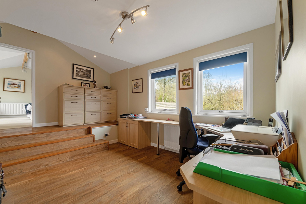 A versatile office—formerly bedroom two—offers a superb workspace but could also serve as a dressing room, an annexe sitting room, or an additional bedroom.