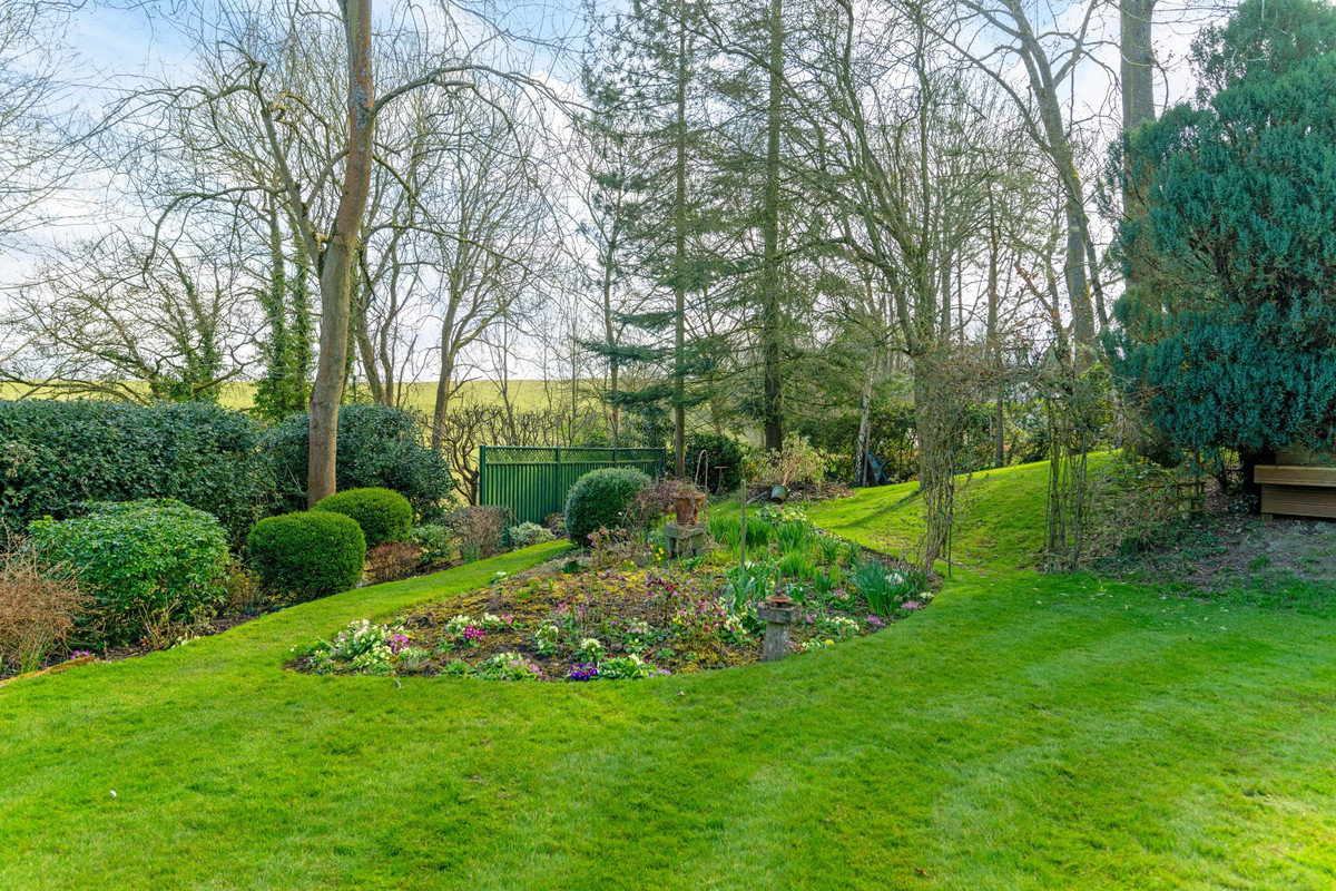 - Beautiful 0.48-acre mature plot with lawns, trees, and countryside views.
