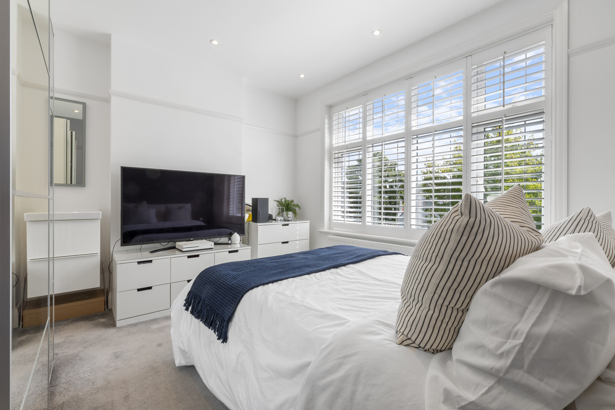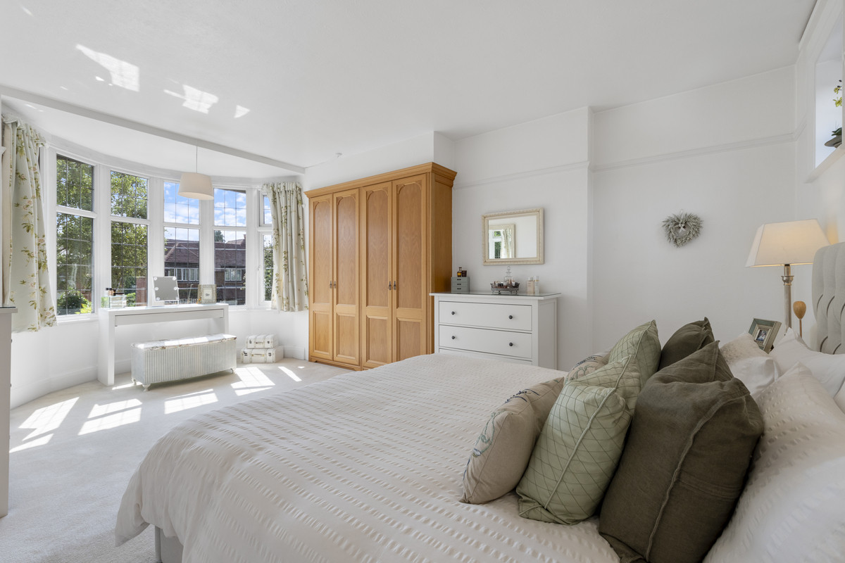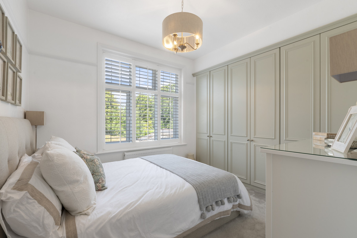 A particularly generous principal bedroom, filled with natural light and offering built in wardrobes and ample space for additional furniture, a true retreat at the end of the day.