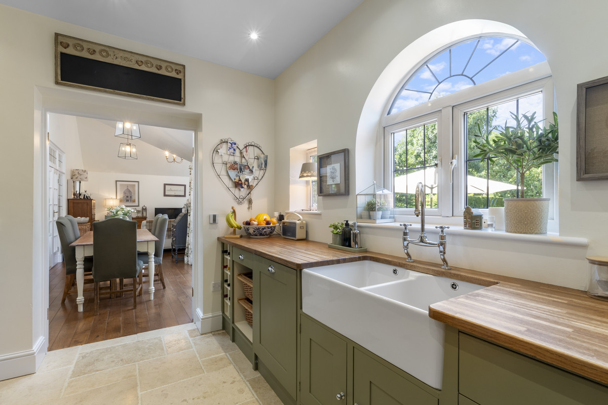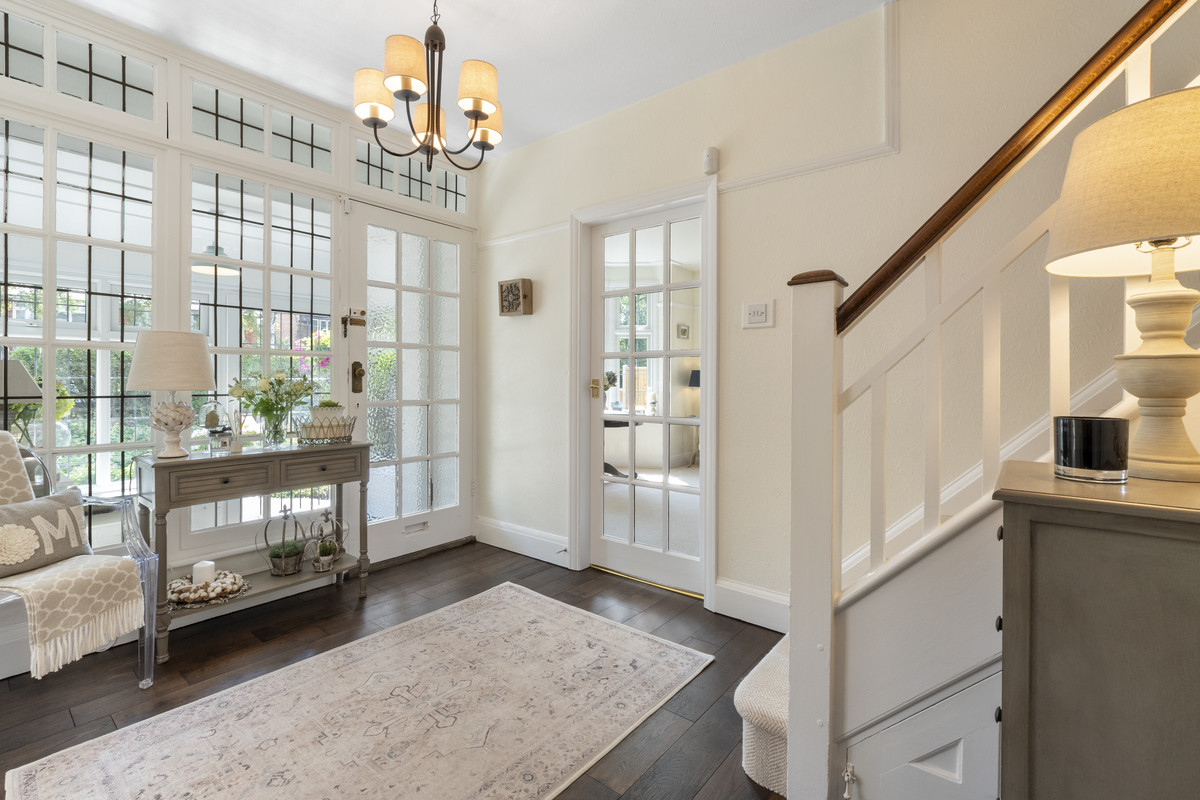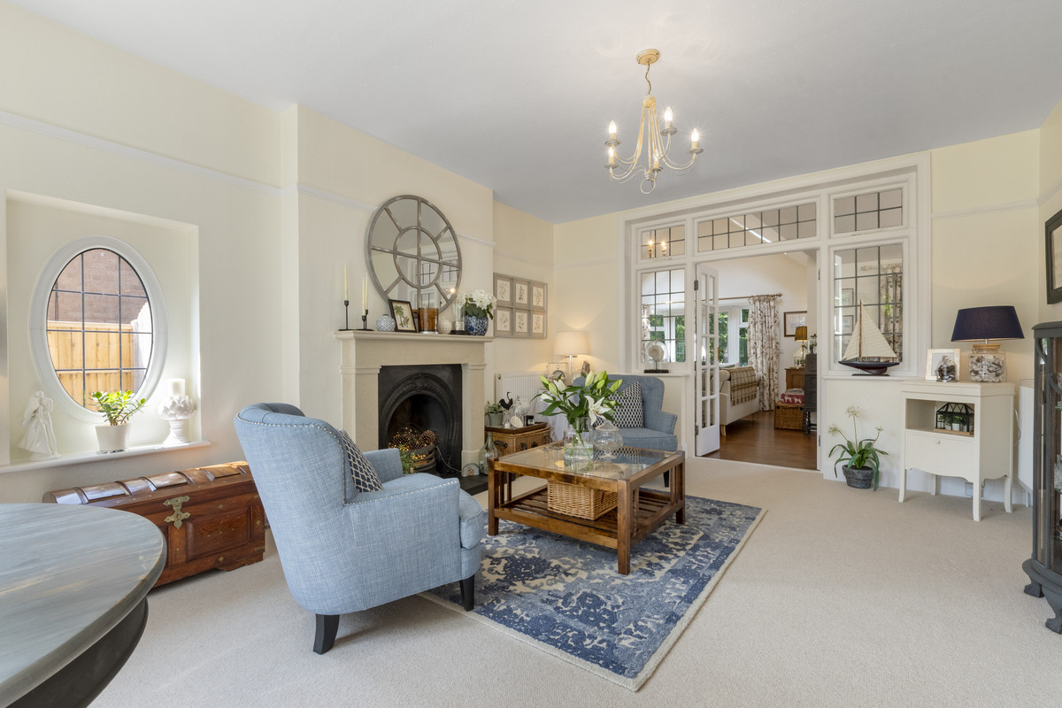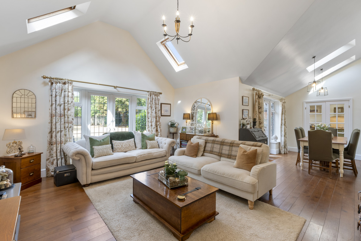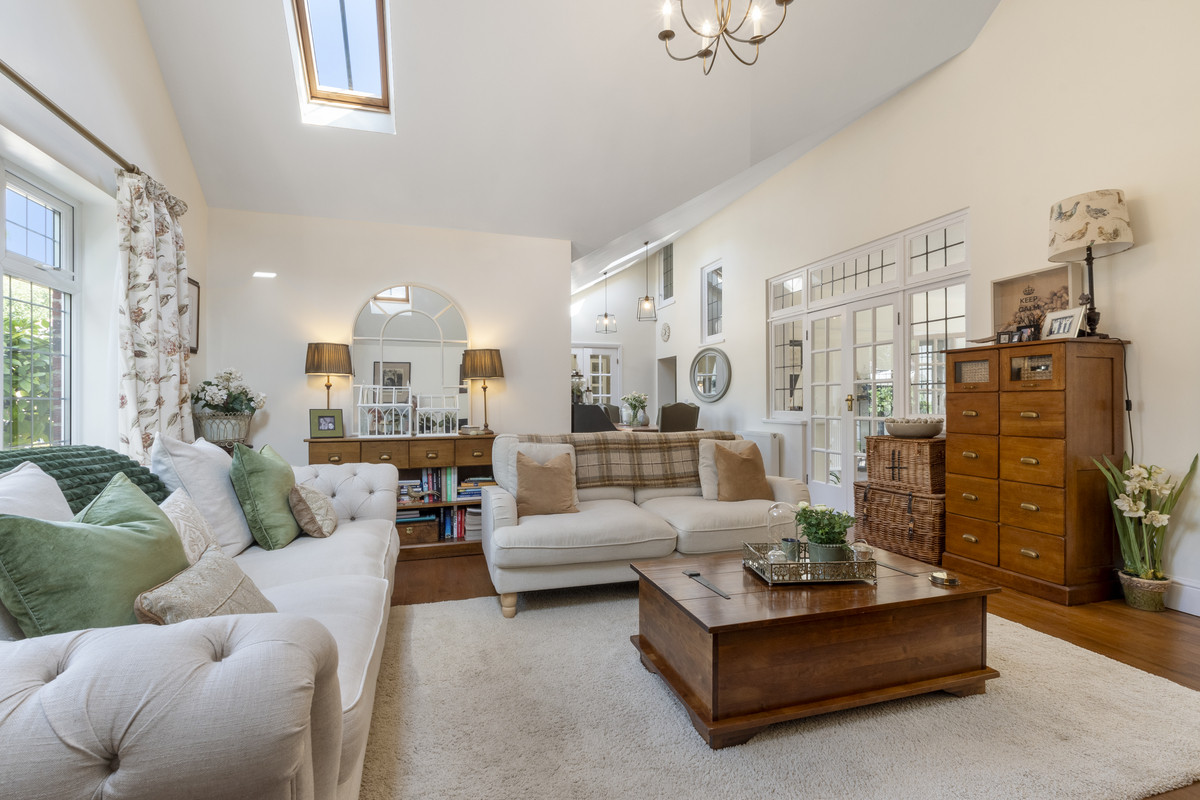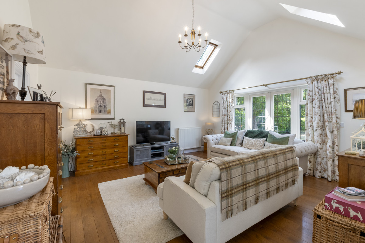 - Seamless indoor/outdoor living with twin sets of French doors opening onto the garden