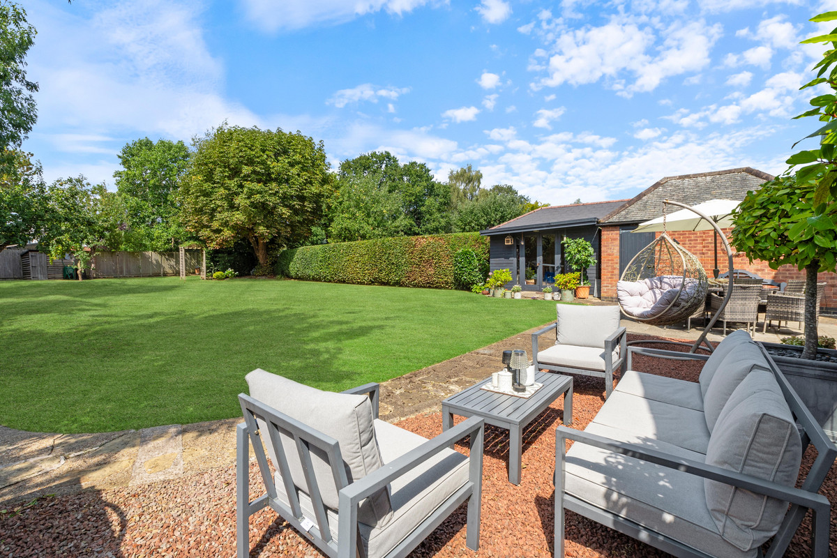 The sweeping lawn is ideal for children to play, while the well-placed summer house offers an additional retreat, perfect for hobbies, relaxation or even a home gym.